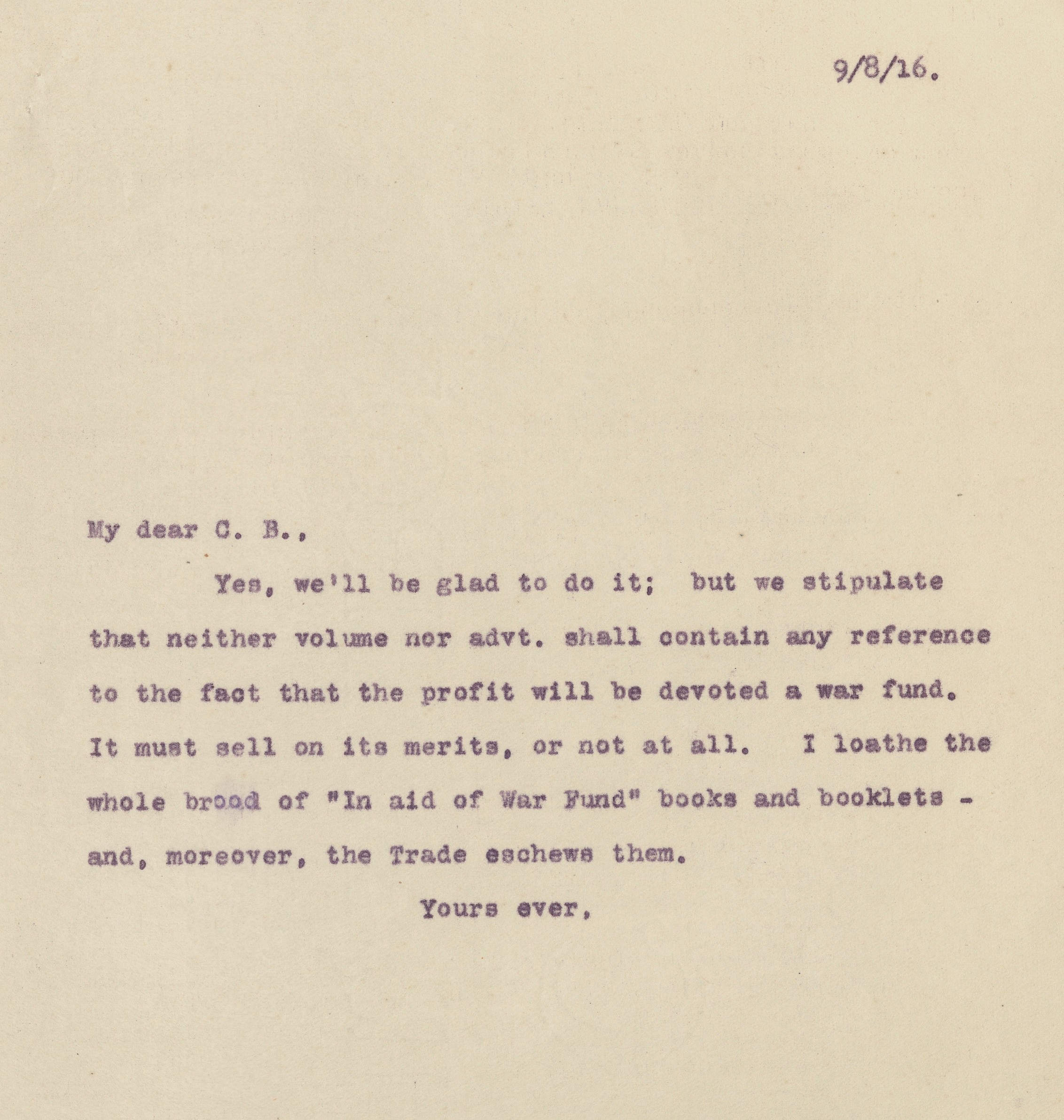 (f) Autograph letters to Rolf Brennan from a friend.