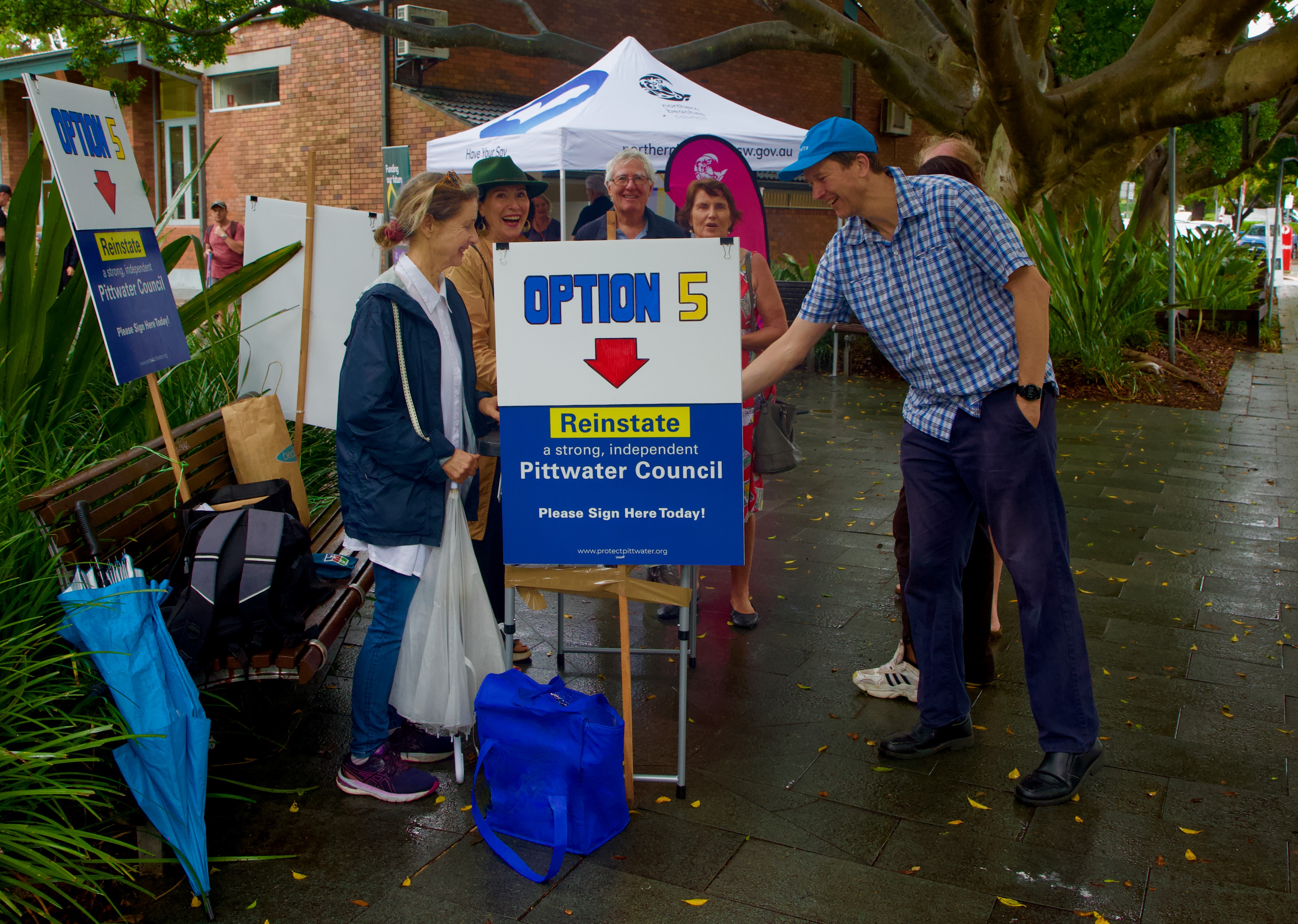 ‘’PP had a stall on Saturday in Mona Vale outside the Memorial Hall and next to NBC tent - The 3 Pittwater councillors were there with the CEO and other council staff. I could see people getting very worked up in the council tent. We at the PP table collected hundreds of signatures from people fed up with council’s lack of understanding with Pittwater’s fragile environment - endangered wildlife and our tree canopy disappearing quickly. Now with rates going up there was even more anger as they were promised millions of savings if we amalgamated.
