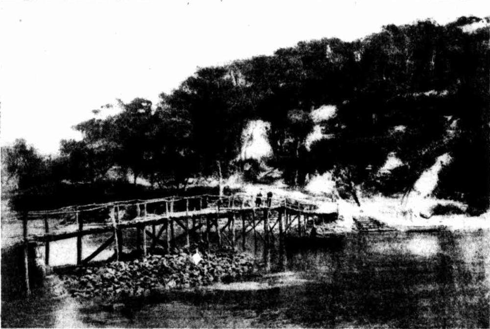 Mossman's Bay from the entrance appears like an oblong square, about half a mile to its head, with thickly-wooded sides and deep water throughout. Rocks studded with countless oysters are the attraction to the hungry pic-nickers who have left the traces of their incursions by relics of ancient sardine tins, pale ale bottles, and Henfrey's soda water, in any quantities.