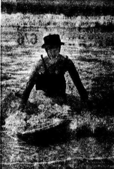 The Surf Life Saving Association recently accepted affiliation of a Board Section, whose patrols will be rostered as a part of regular rescue work. The boardmen will be qualified life-savers and members of surf clubs. All beaches will have board-riders on patrol outside the breakers. A whistle or hand-signal from the shore will direct the riders to a "patient" in half the time it will take beltmen to battle through the waves. "Patients" will be supported on the boards and paddled to the beach. If the surf is too rough, "patients" will lie on the boards until the arrival of beltmen to take them in.
