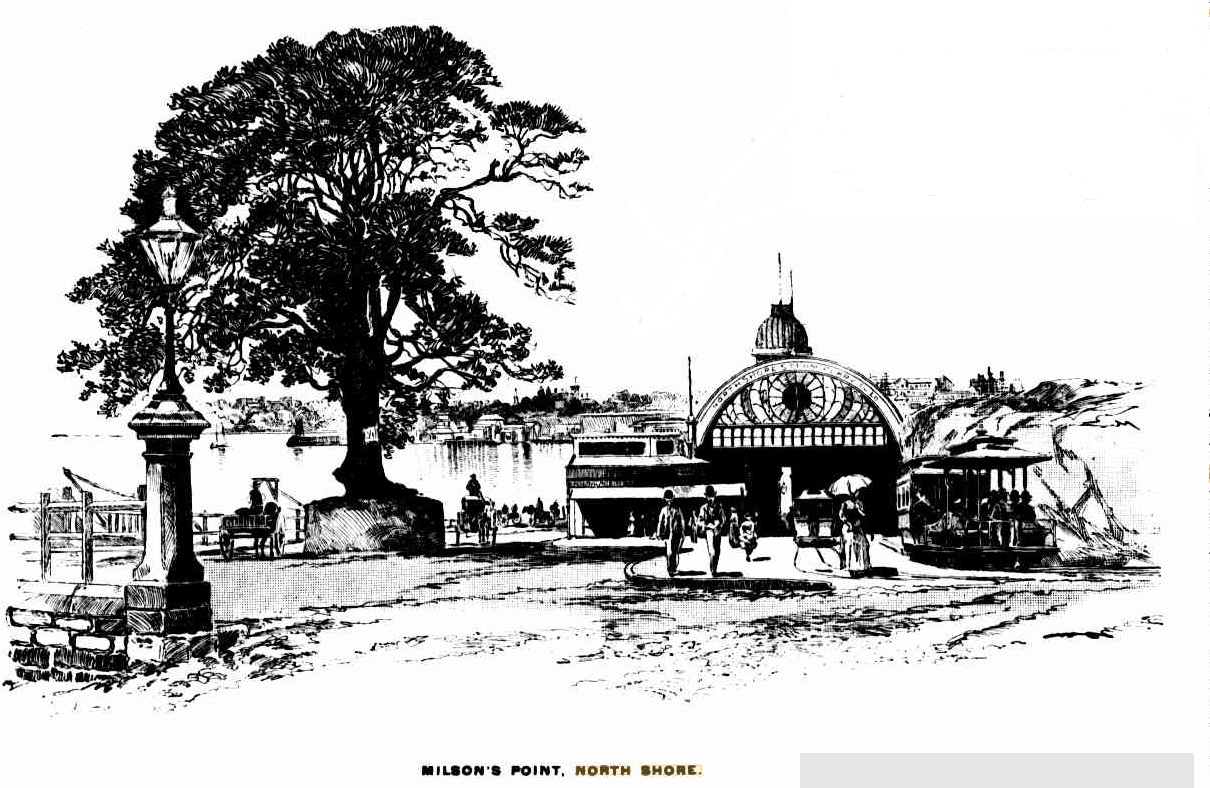 Gerrard Brothers established the first North Shore ferry. That was forty years ago. Instead of the splendid service of penny steamers, which now run every quarter of an hour between Circular Quay and Milson's Point, two very indifferent steam craft carried passengers between Blue's Point and "Windmill-street. As these vessels also did the towing for the port, communication was extremely irregular, and the only alternative was to obtain a water-man's skiff - if one were procurable. Gerrard's Ferry, as it was called, subsequently became Milson's Ferry Company, the Gerrards disposing of their interest in the concern to Mr. John Milson and some others, who in their turn sold out to the present company.