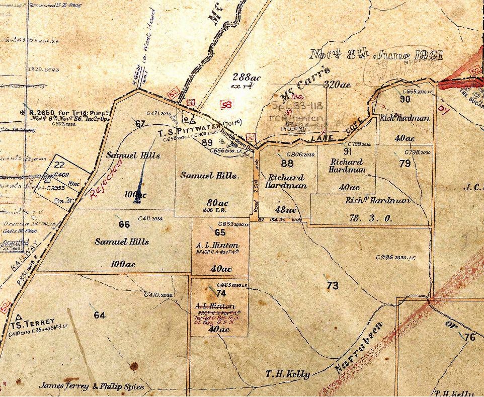Other early orchardists included George Mudie, a Scot who, having worked for his father in a bakery at Circular Quay and tried his luck on the Victorian gold fields, who bought 125 acres at £1 an acre, on the Cowan Road. Mudies Road bears his name. James Terrey, had 100 acres, now the site of the Pymble Golf Course. Mr. Terrey also owned 640 acres further east, owned for a few years by his Obadiah prior to his early deaths and later named after James Terrey - Terrey Hills - as well as land at Cottage Point. [4.]