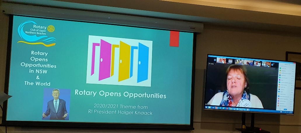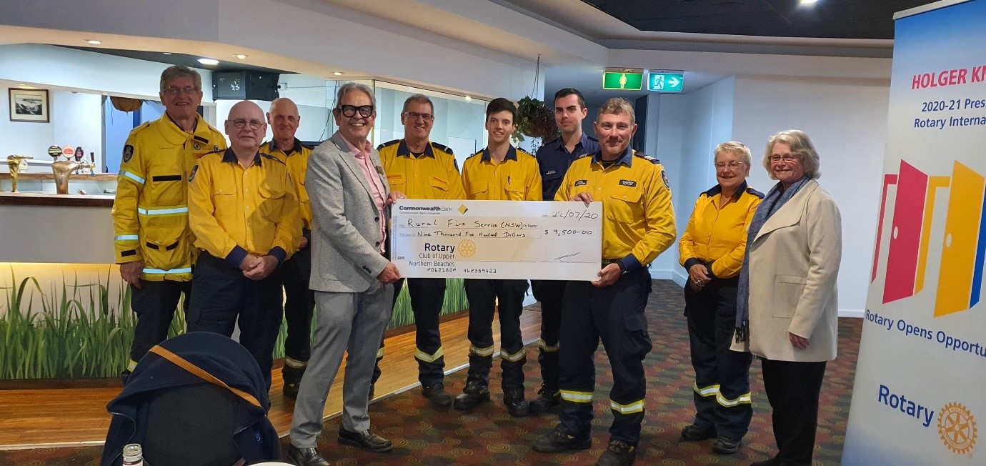 UNB Rotary, on behalf of all the Rotary Clubs, presented a cheque for $9,500 (Aus) to the RFS (NSW). The Club had earlier supplied $12,750 to Narromine Rotary for local drought relief. There were 40 people present by Zoom (including 30 UK Rotarians) with 28 people in attendance at the Pittwater RSL (Returned and Services League), Mona Vale, NSW.