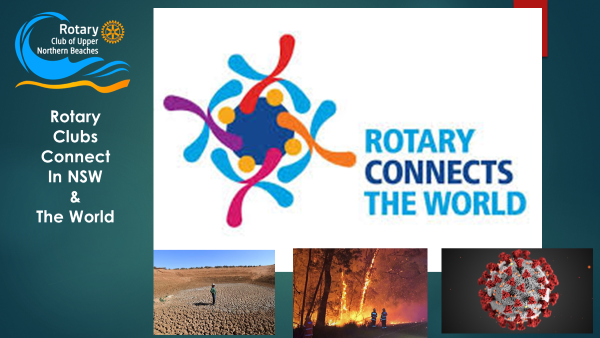 On July 22nd 2020, the Rotary Club of Upper Northern Beaches (UNB), Sydney, Australia had an International Meeting with 5 other Rotary Clubs in Australia and the UK plus the local Rural Fires Service Brigades, where they discussed what they have been achieving during these difficult Covid times and how they have worked together to support the New South Wales (NSW) Australian drought stricken farming community and overworked local Rural Fire Services (RFS) brigades who travelled far afield to fight the devastating fires that swept throughout the Australian state.