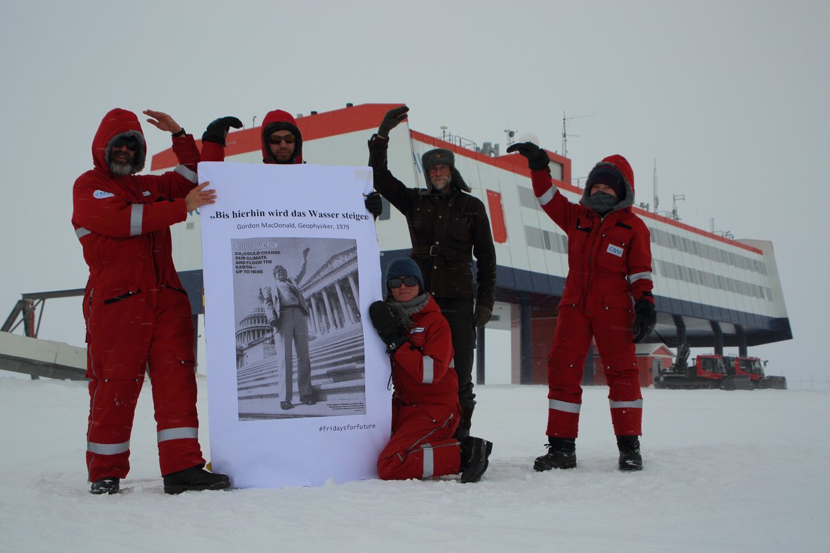 Photo: March 15, 2019 - courtesy Alfred-Wegener Institute; 'FridaysForFuture Overwinterer at the Neumayer Station III in the #Antarctic support the #SchoolStrike4Climate #ScientistsForFuture'