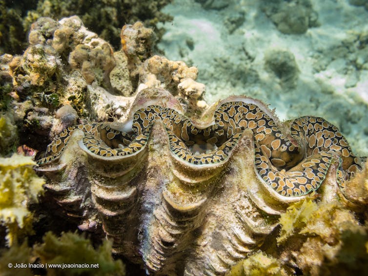 Giant clams do not move or dig themselves into the sand. Their main strategy for protection is to grow super strong, thick and heavy shells and, as you can see, these also have corrugations. Giant clams are the largest clams in the world. They can reach up to 1.2 metres in length (around the height of a six-year-old kid!), weight more than 200 kilograms and can live for more than 100 years.