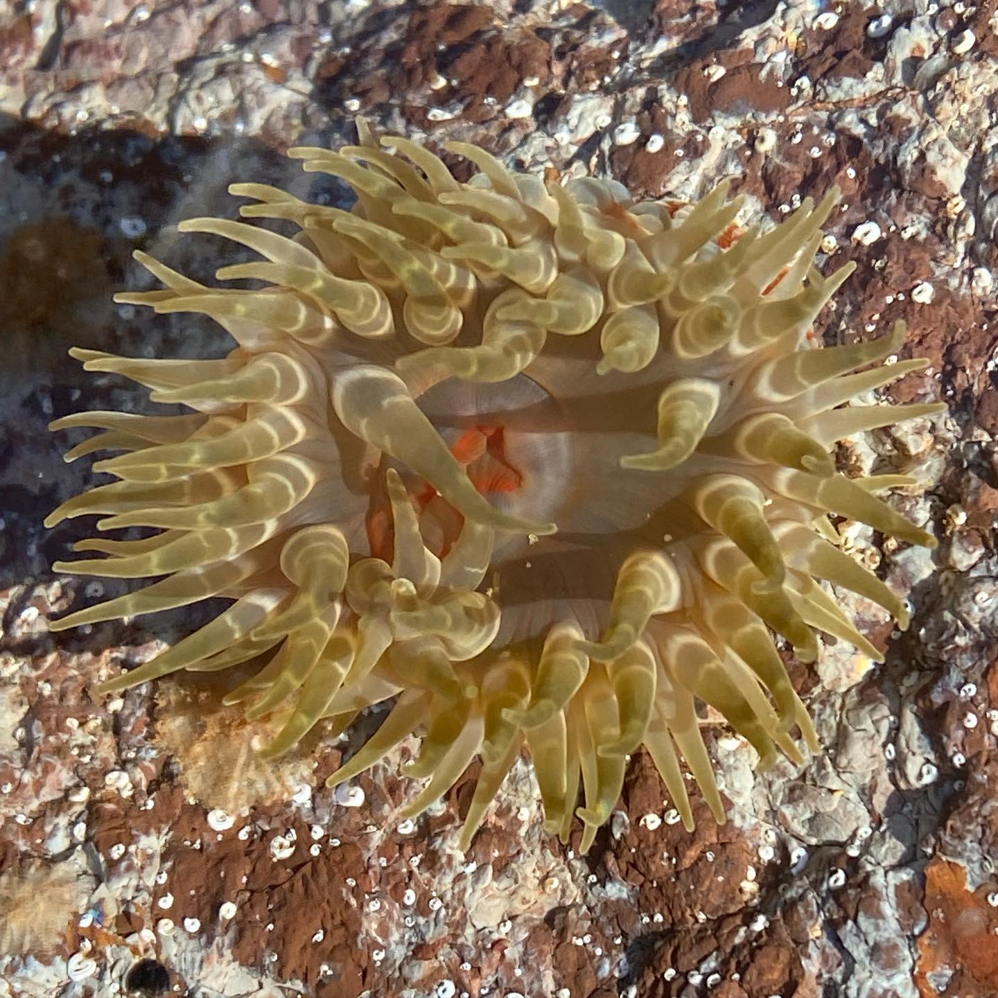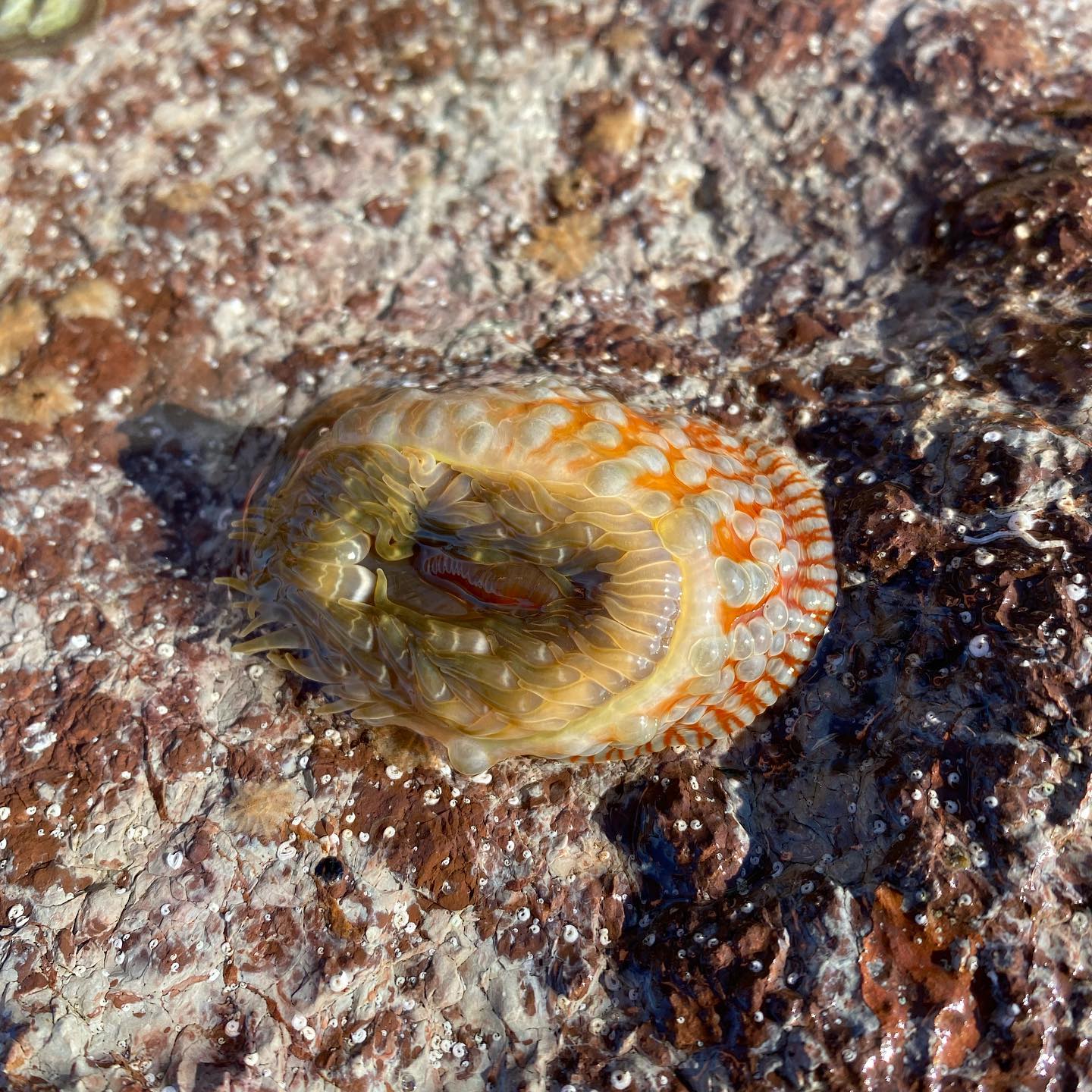Starfish; can flip over as has all these legs when we put them on their backs; eating a bit of octopus in this photo. A 'flip back over demonstration' by Sally and one that was bright red-orange: