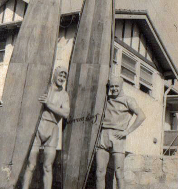 Servants employed by the Waikiki Surf Club took charge of their surfboards, rubbed them down with paraffin wax, carried them to the water's edge, and even waited to carry them back after Bob and the other boys had finishing riding....