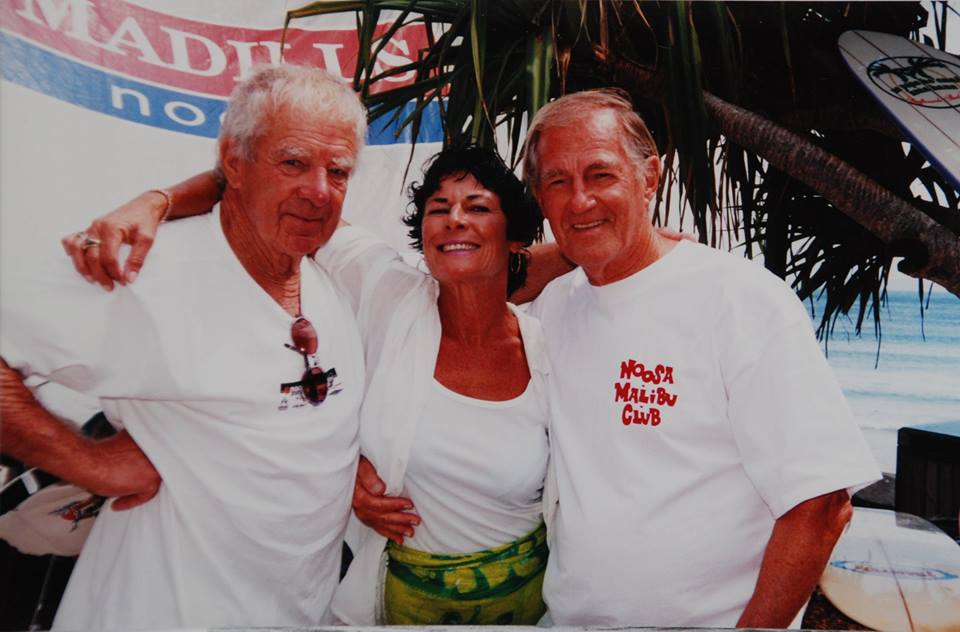 Gordon Woods, Pearl Turton and Jack Eden. Noosa Surf Festival 2002. Photo courtesy Ron Turton - Pearl's first Board was a Dillon, she still has the receipt