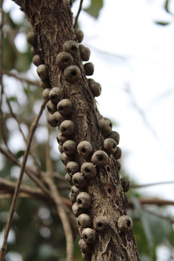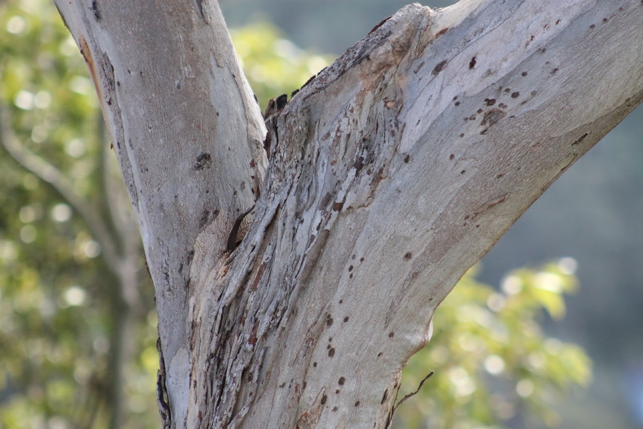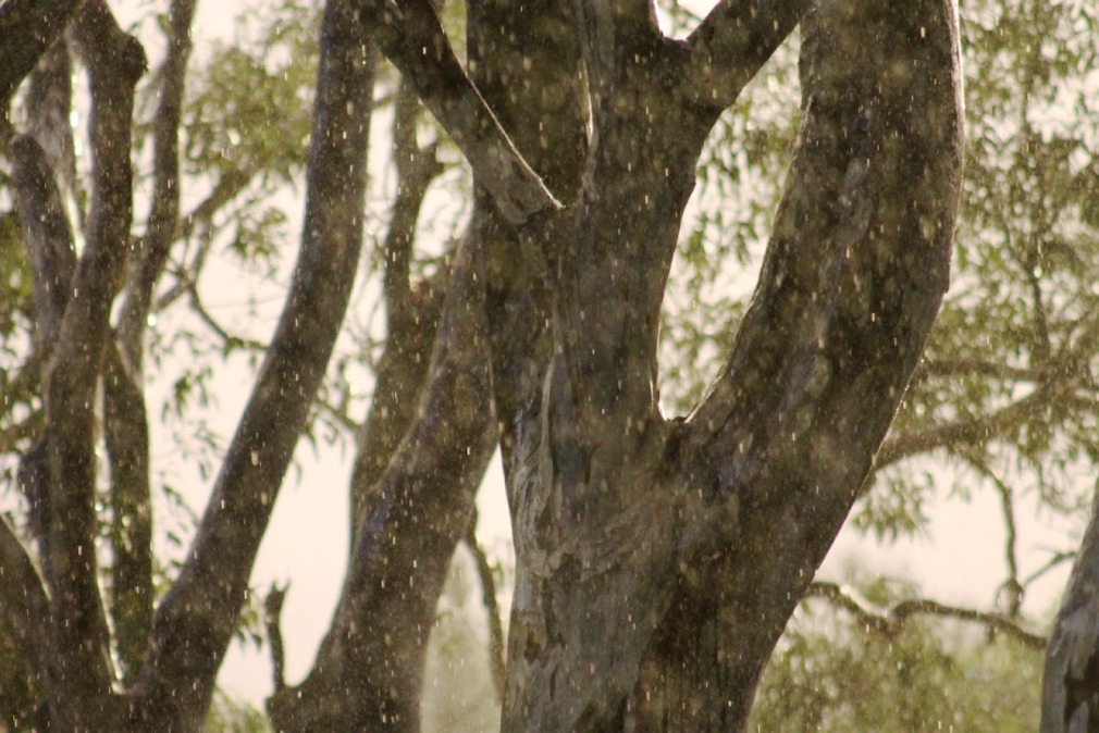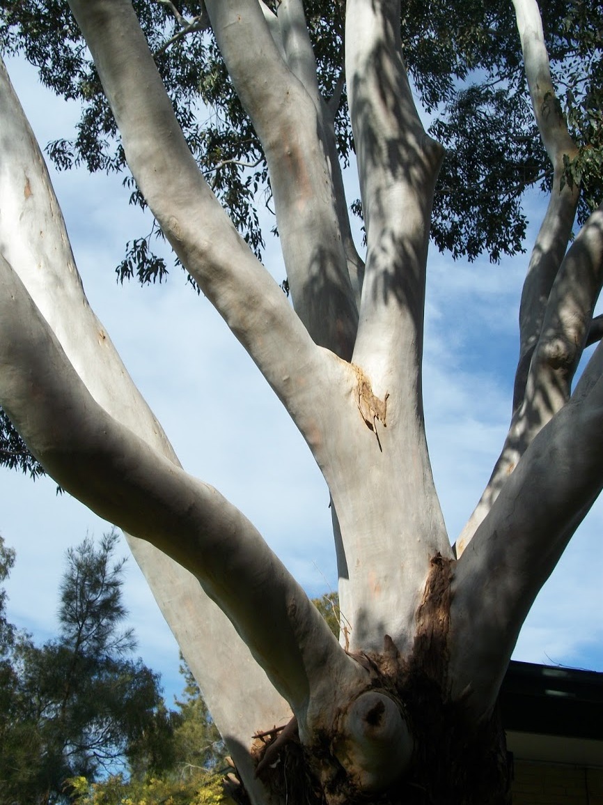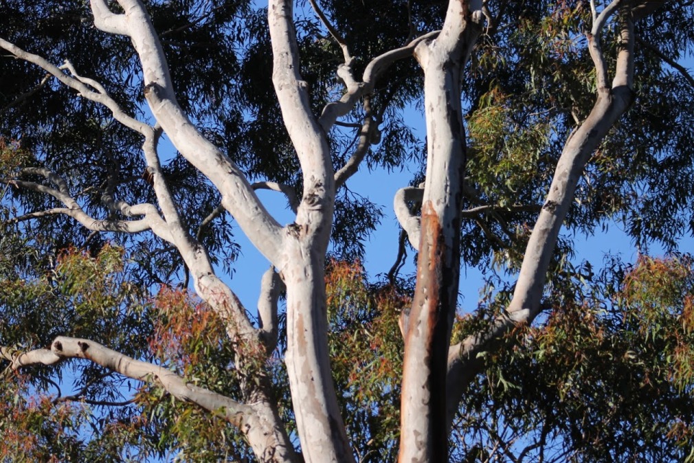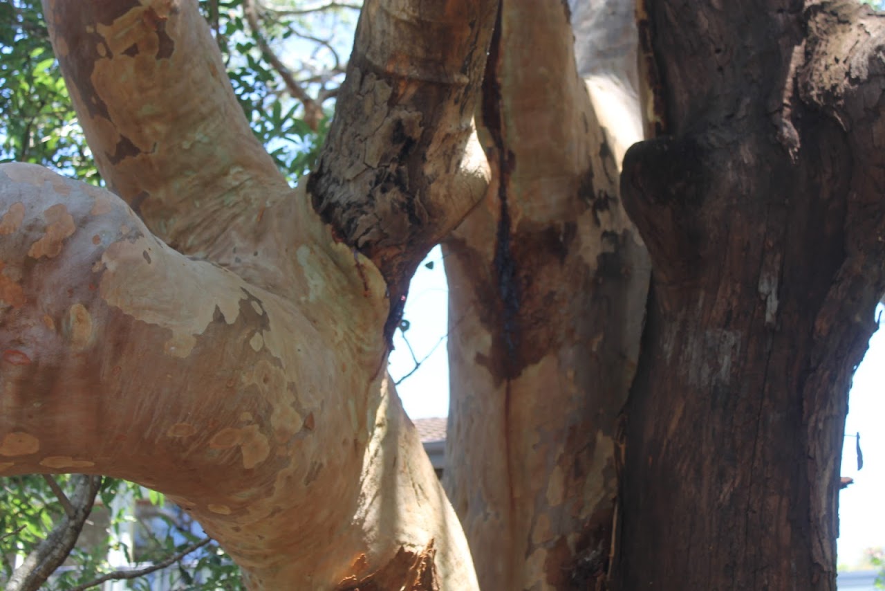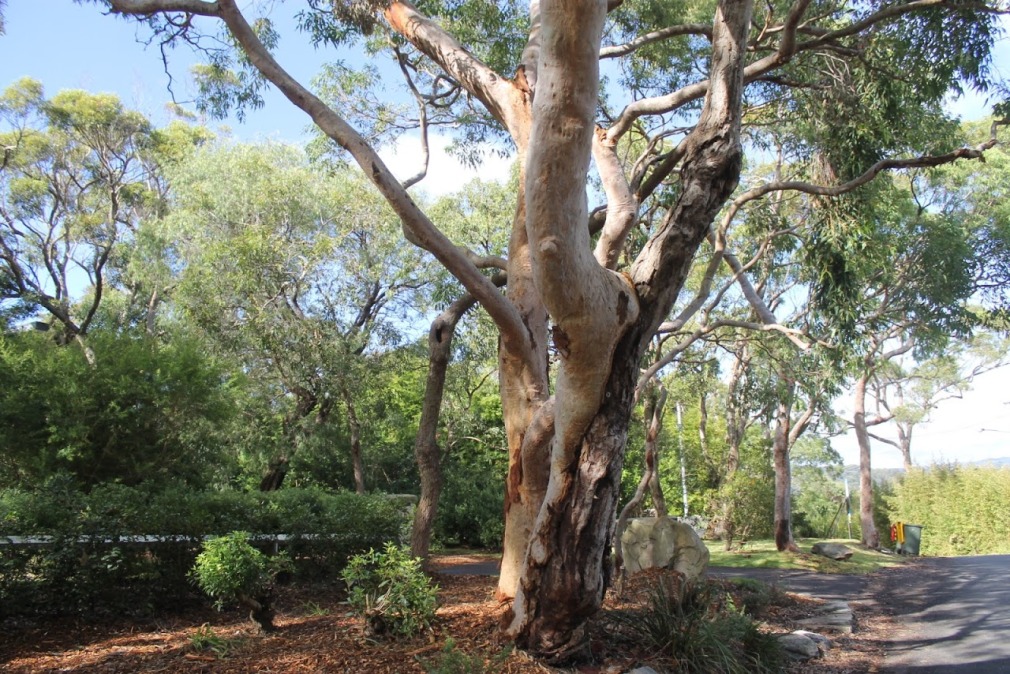 The spotted gums in front and back gardens – and their seasonal shifts in colour, bark shedding times, flowerings.