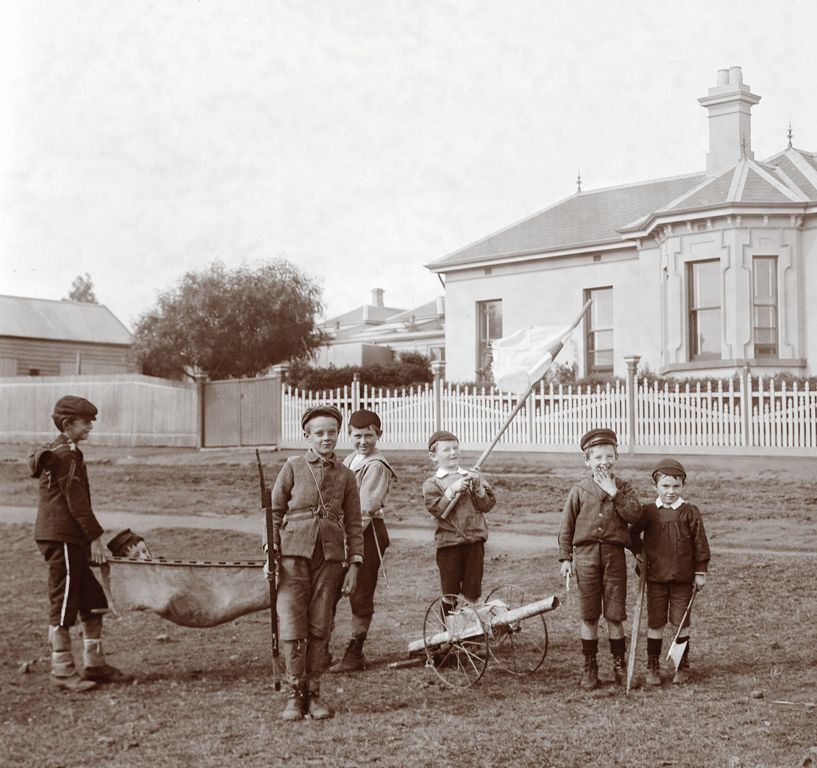 From Page 61; Boys playing soldiers, J. F. Barnard, c1900; State Library of Victoria, accession no.H2002.125/30.
