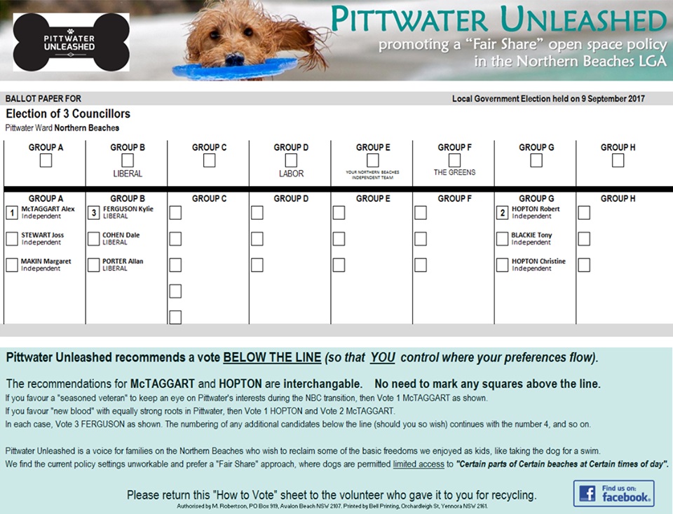 Those who strolled through Careel Bay playing fields or along the shore at Careel Bay during the pre local government elections would have been approached by people forcing on them the below 'how to vote' leaflet. The lobbyists were not interested in any discussing any other point of view.