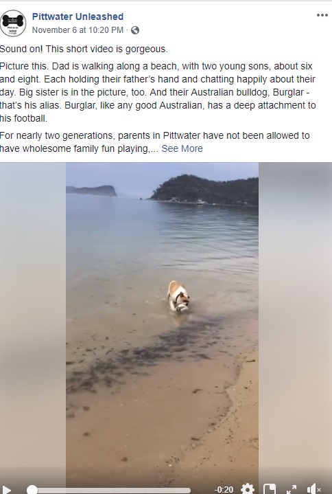 The area proposed is meant to terminate at the Boat Shed wharf. However, posts on the Pittwater Unleashed Facebook page make clear their intention to gain access to the Barrenjoey Headland National Park. Being granted access to the beach that runs to its entrance would facilitate this.