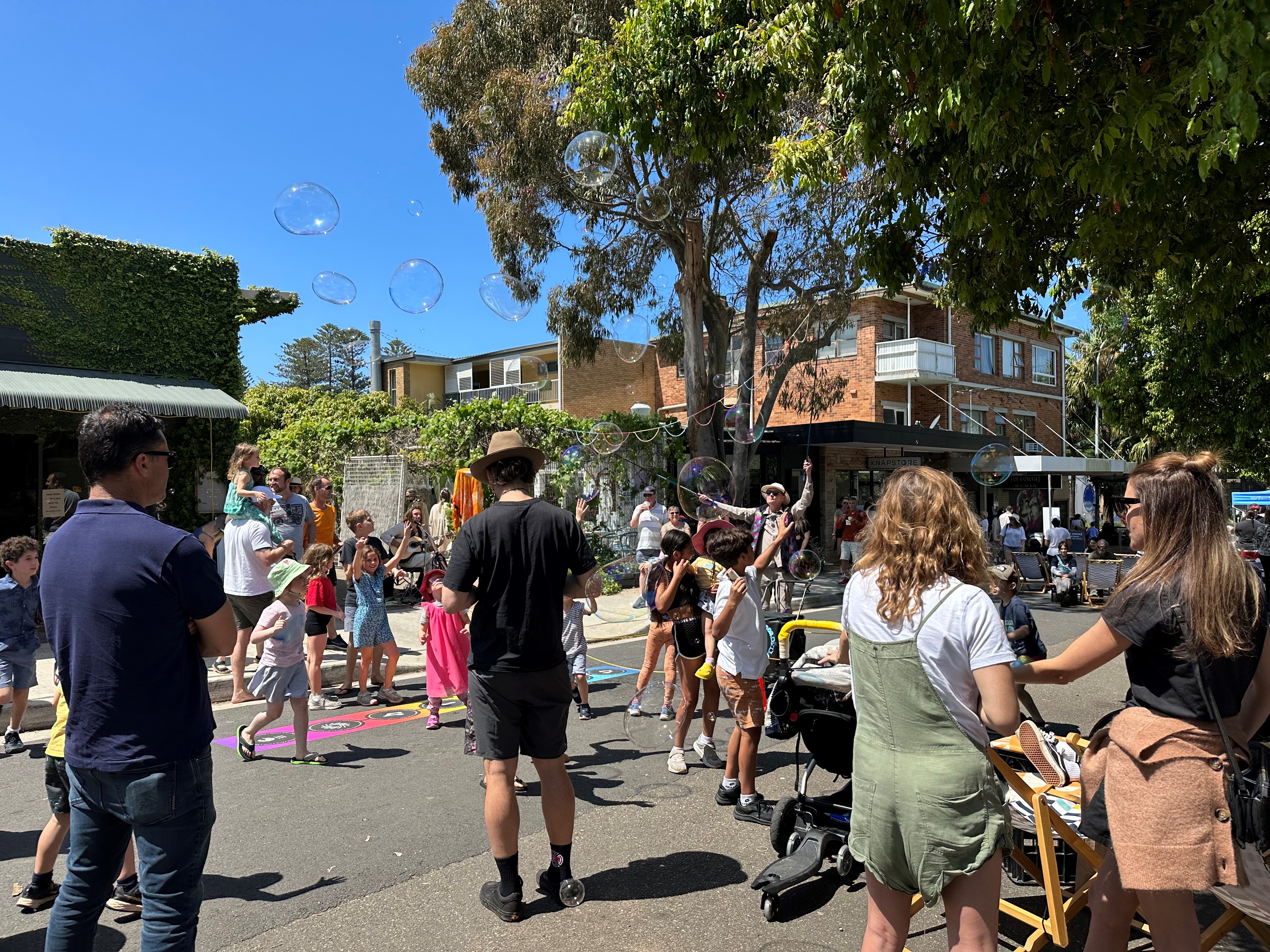 Many people sat outside cafes and on seating in the street, listening to live music and enjoying the sun, while kids watched a man with a giant wand spreading iridescent bubbles above the crowds.