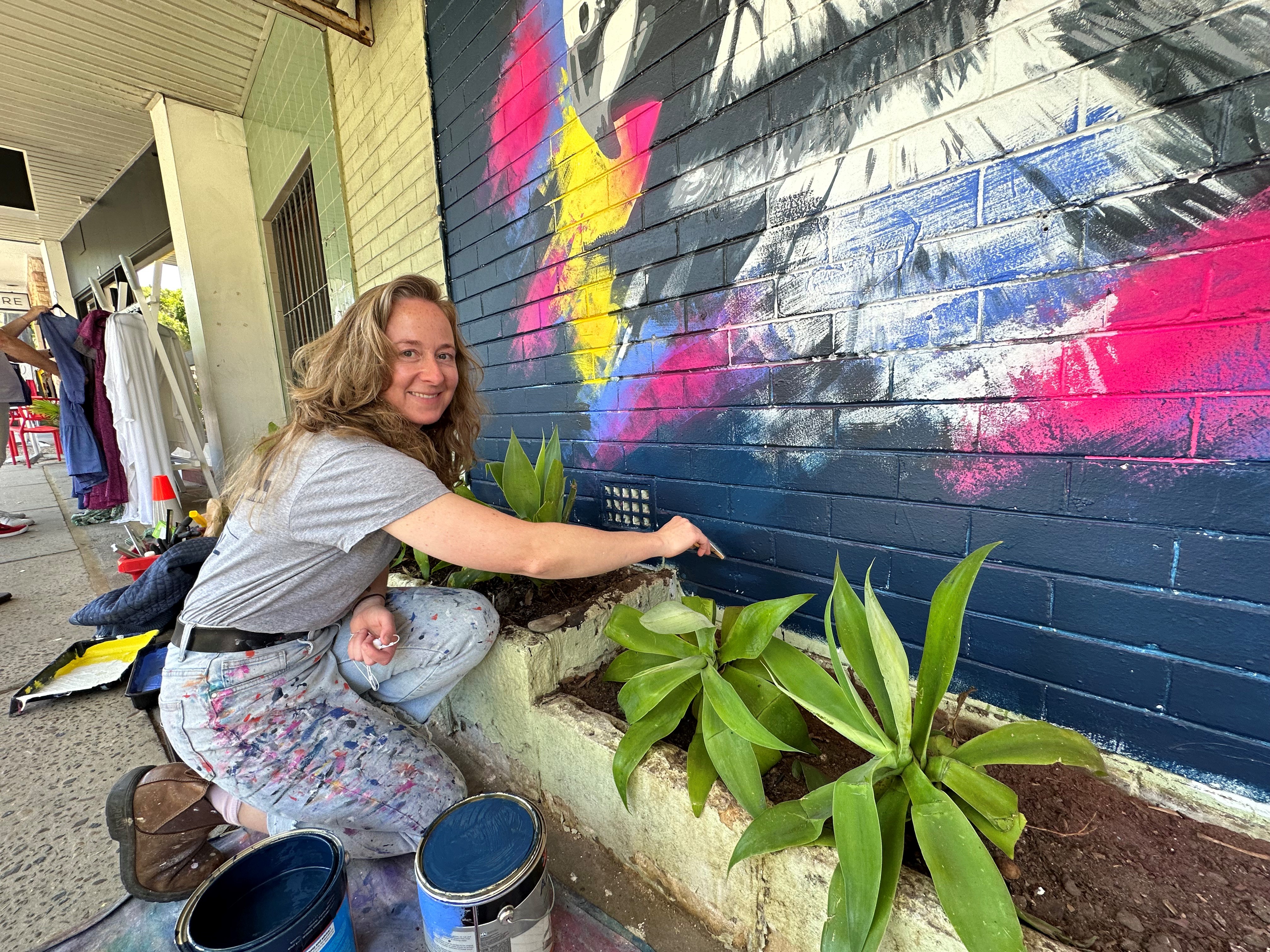 The mural, painted over two days this week by Katoomba based street artist Mandy Schoene-Salter, who works under the name Man.de, graces the wall of the building on the corner of Barrenjoey Road and Robertson Road.