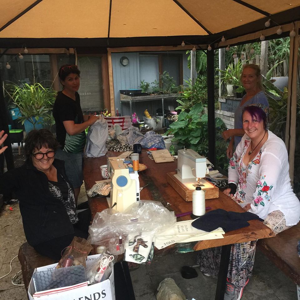 Sewing bee at Elanora Heights - more pouches being created - hosted by Selena Grifith, who is taking the photo of Bea Pierce and these other wonderful ladies. - Photo supplied.