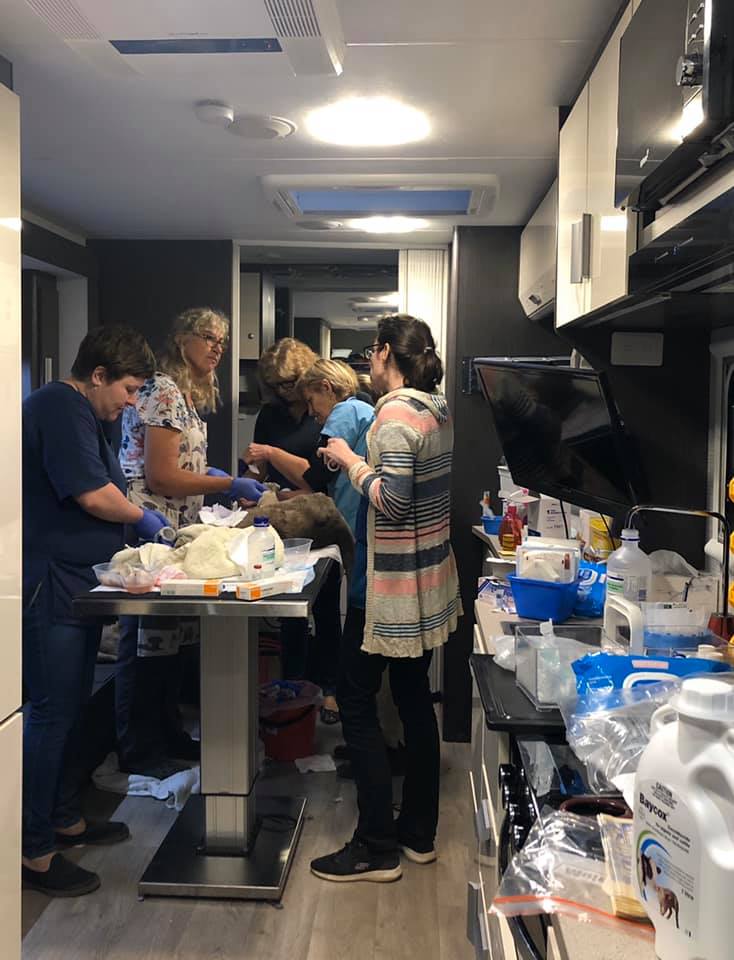 This will be ongoing. For a long time yet. - Melinda Whiteside Ross, January 12th, 2020Inside the van, outside the van, out in the fire grounds and in the enclosures - our volunteer veterinarians have been working extremely hard for the fire-affected wildlife.