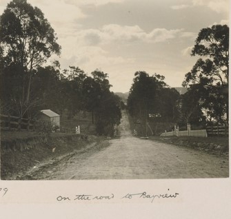 The turn off to Bayview, called 'Bay View Road' on early land maps, commenced at the junction of Pittwater and Barranjoey roads. An earlier description of the road to Church Point, post the wharf being installed:
