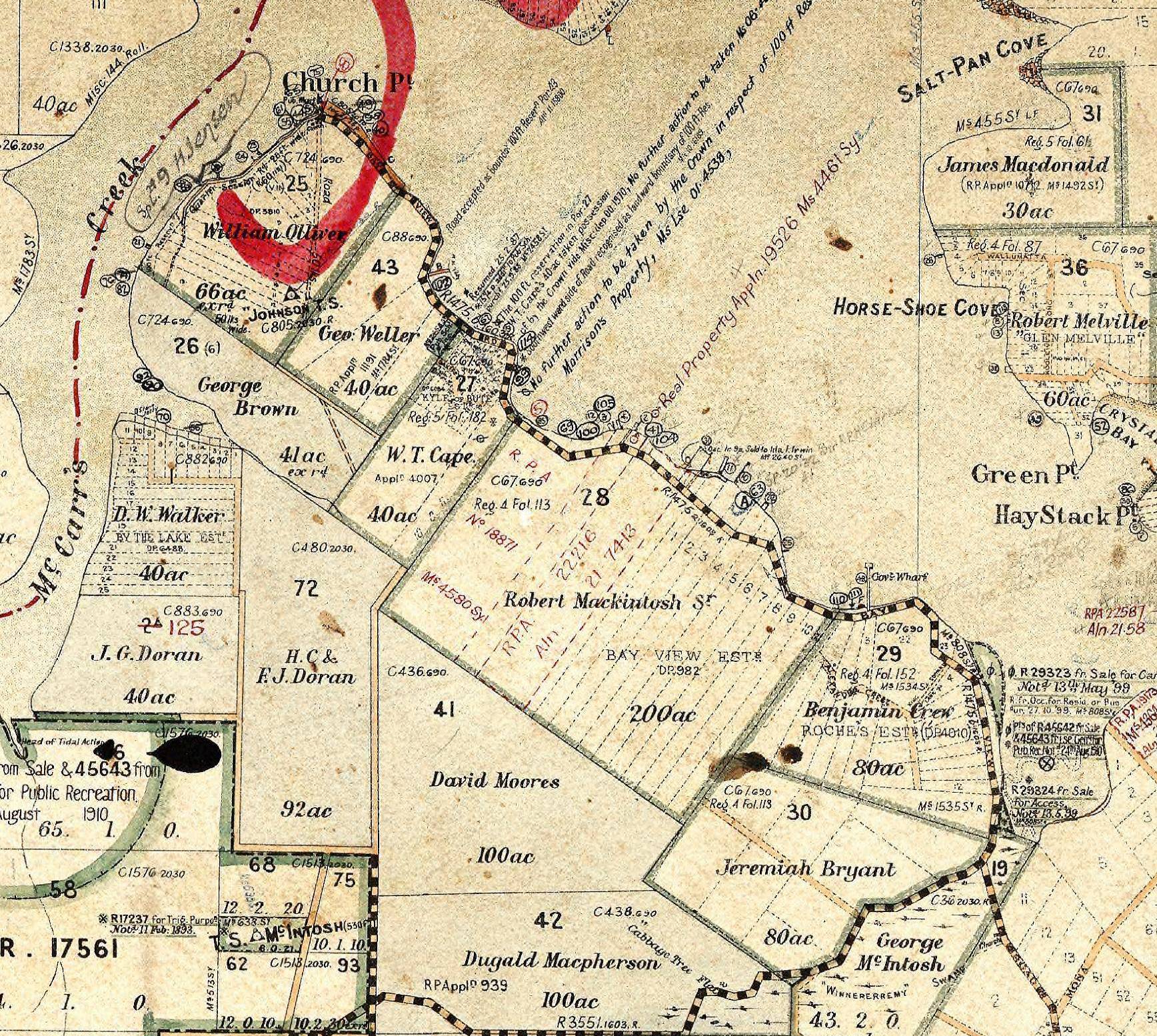 Dr. Tibbits of Petersham, a medical practitioner, is the landholder of 40 acres, part of Portion 25, on the west side of the ‘church acre’ at Church Point. A year and a bit later: