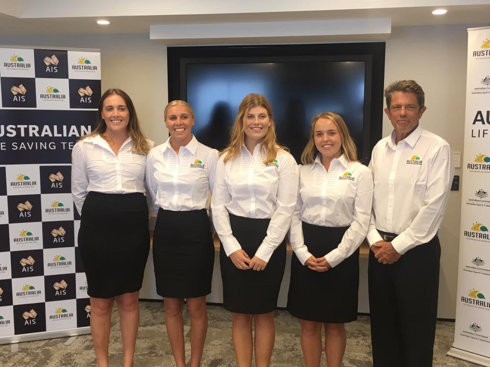 Newport SLSC's Under 23 2017 Trans-Tasman Representatives: Zoe King, Celestine May, Katy Hulton, Piret May and Michael King