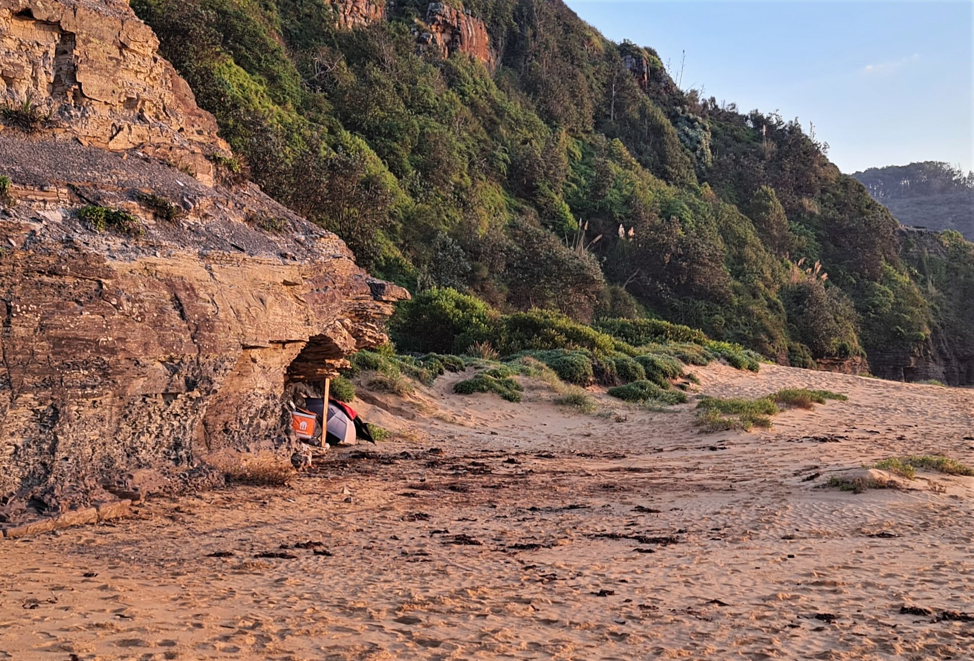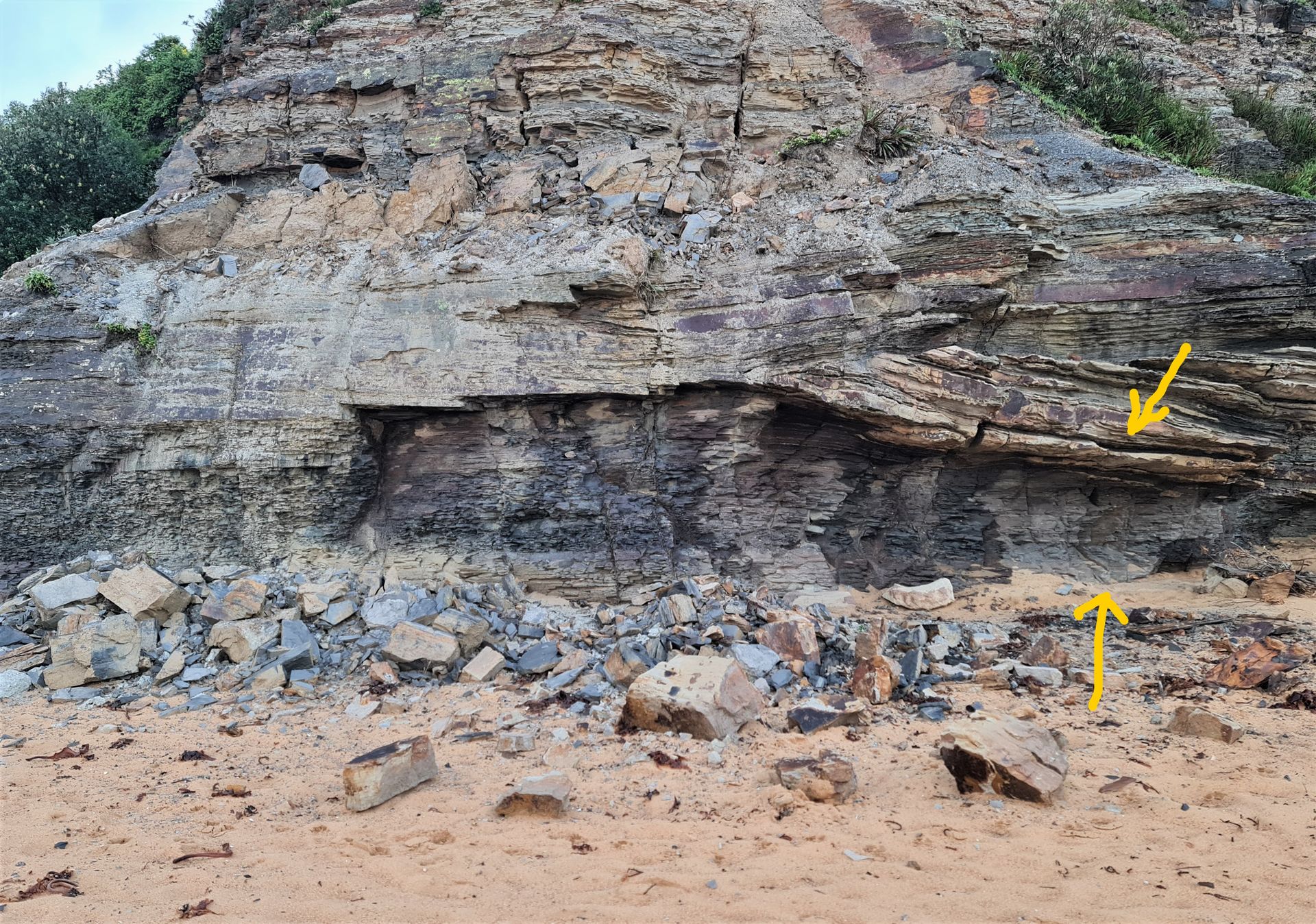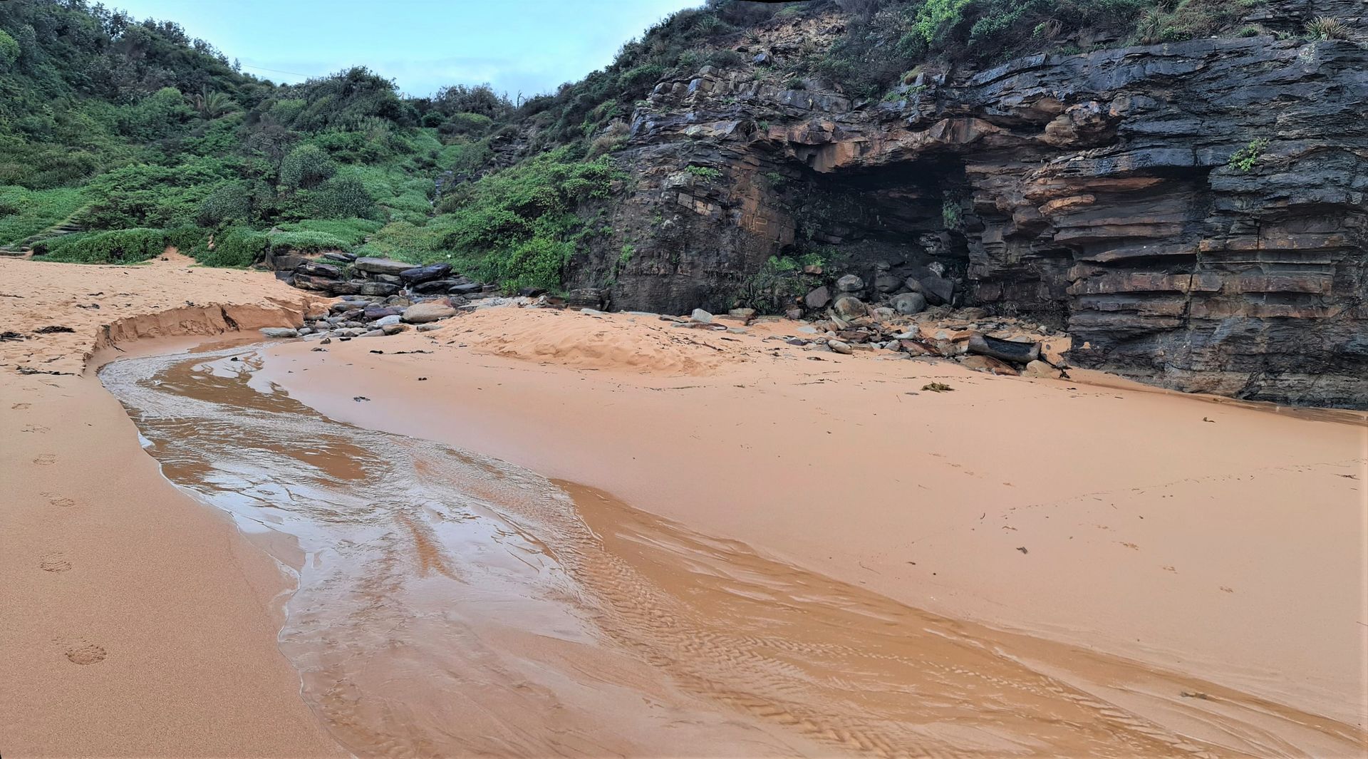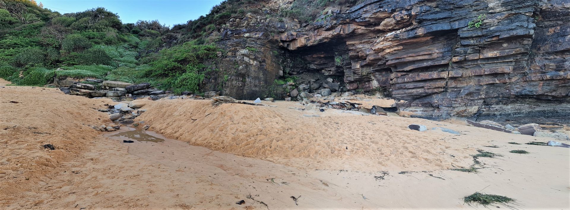 There was a small rock slip on the middle headland just above the spot where our resident Hermit has one of his sleeping spots. He did survive, as he is back to another location, but still prefers Turimetta Beach without the crowds.