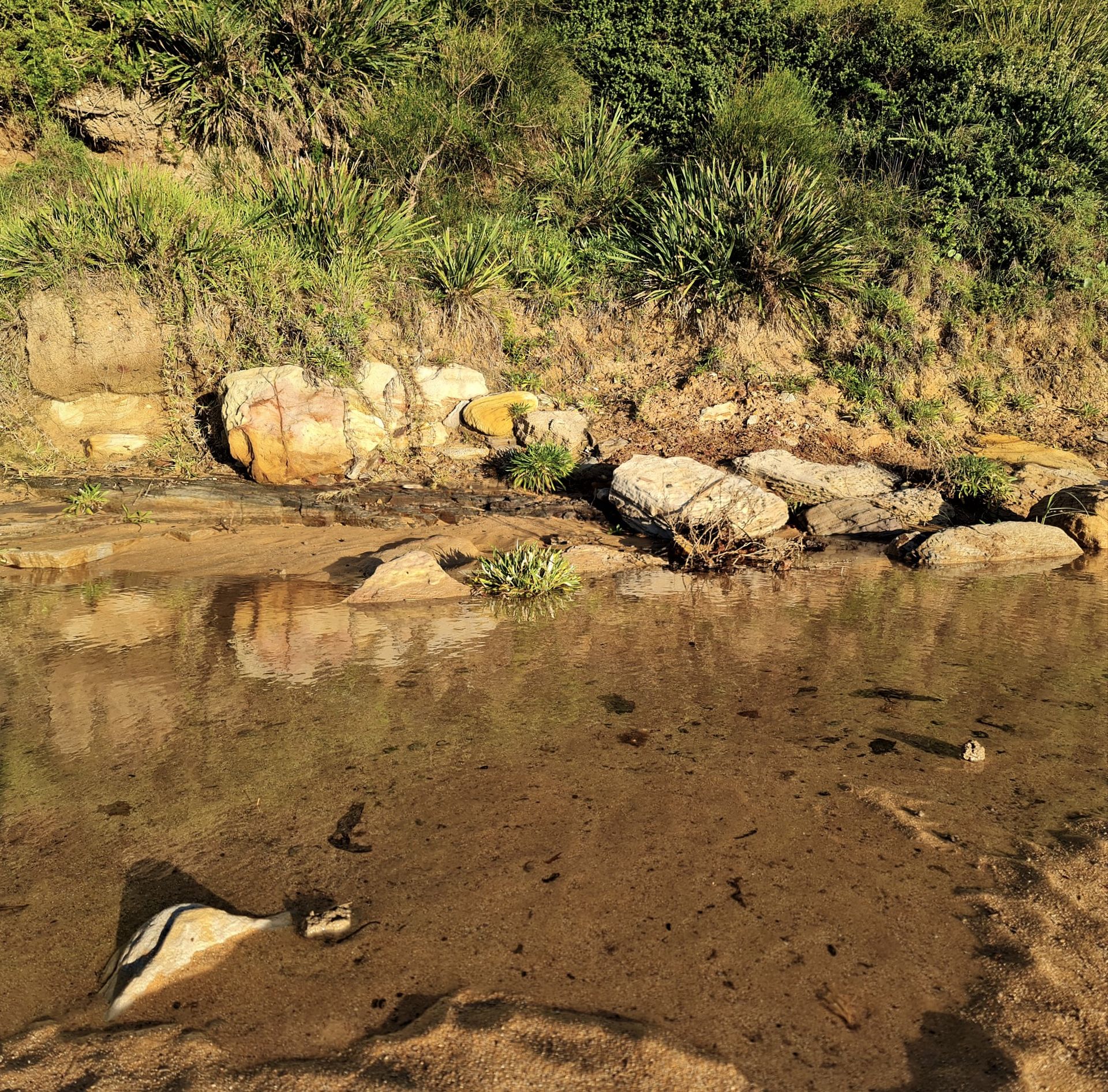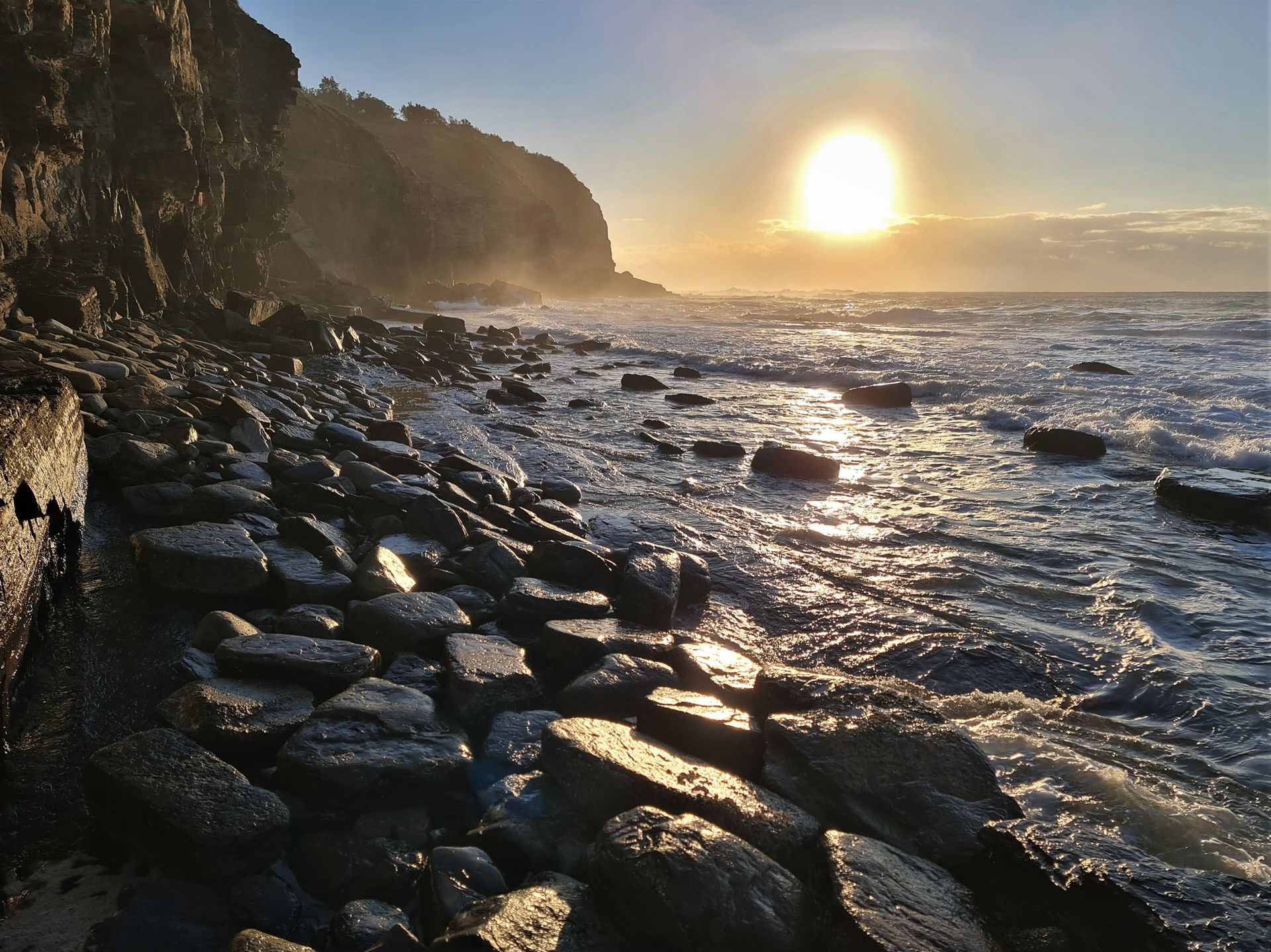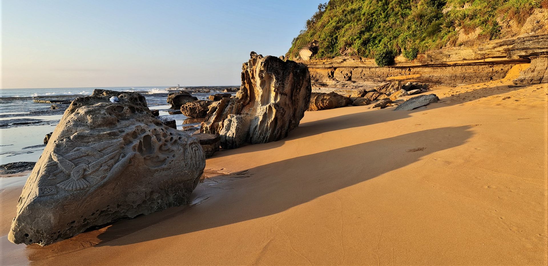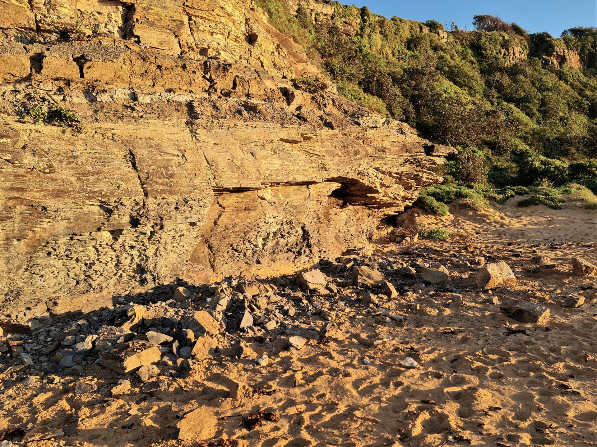 There was a small rock slip on the middle headland just above the spot where our resident Hermit has one of his sleeping spots. He did survive, as he is back to another location, but still prefers Turimetta Beach without the crowds.