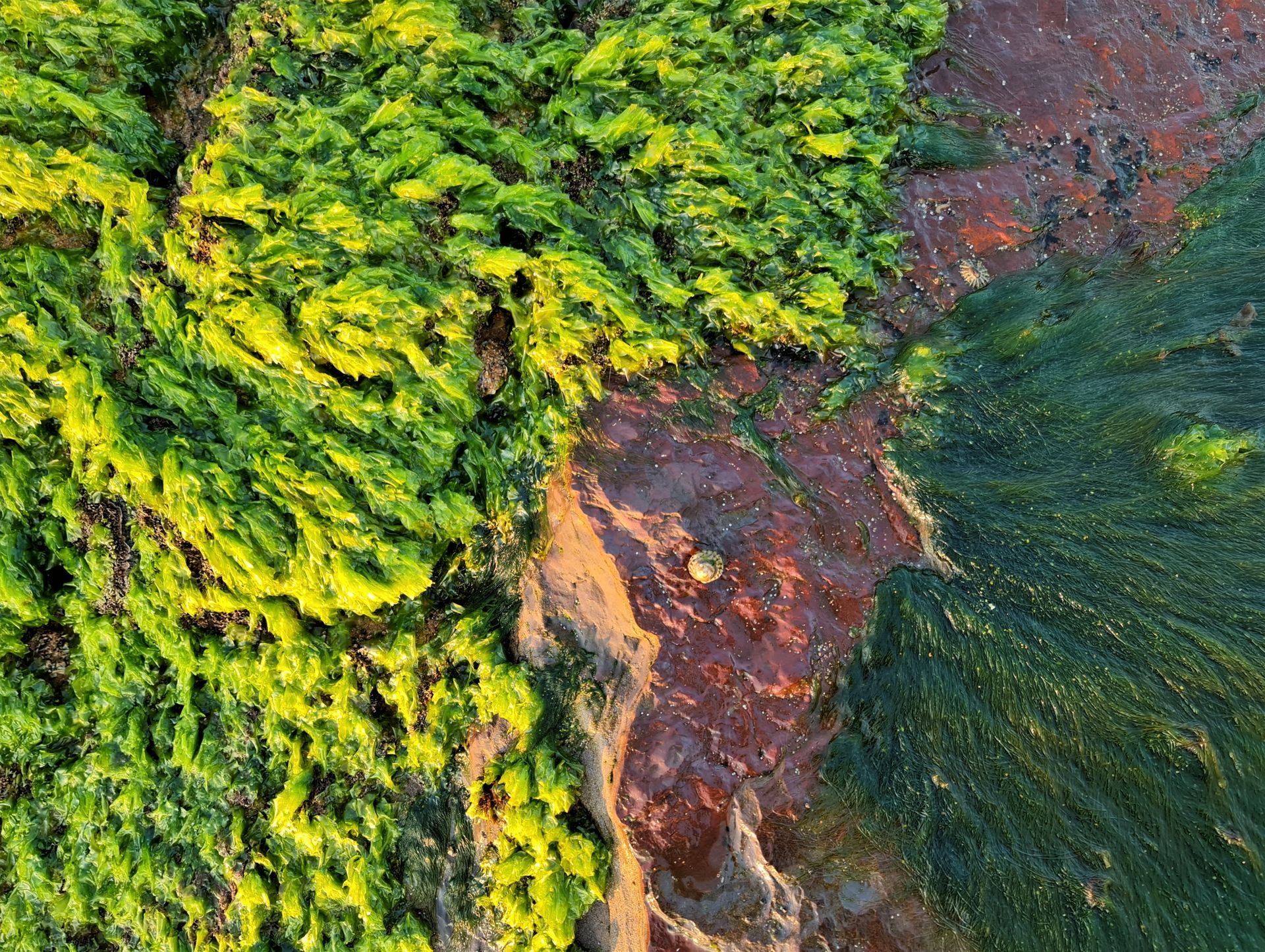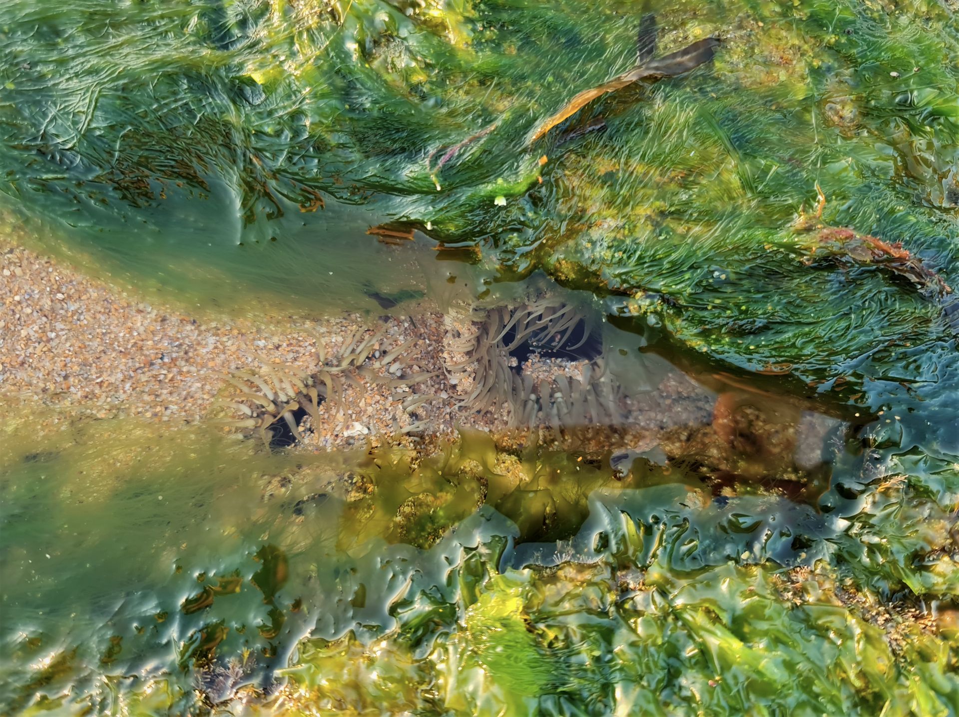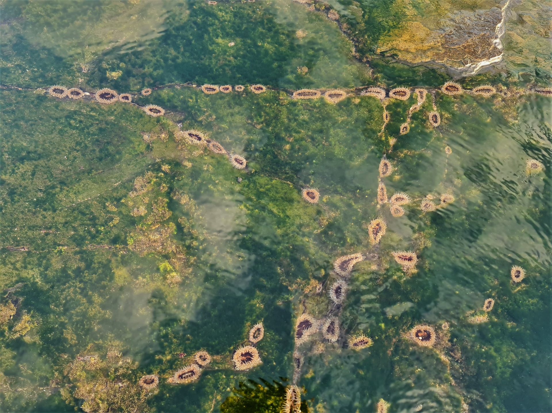 What a mixed week, with lots of rain, and real heavy here at Warriewood all week. Did manage to get down to Turimetta a couple of times, and was lucky one morning to get a low tide and walk around an exposed rock shelf which was covered in green algae. Some interesting wavy patterns.