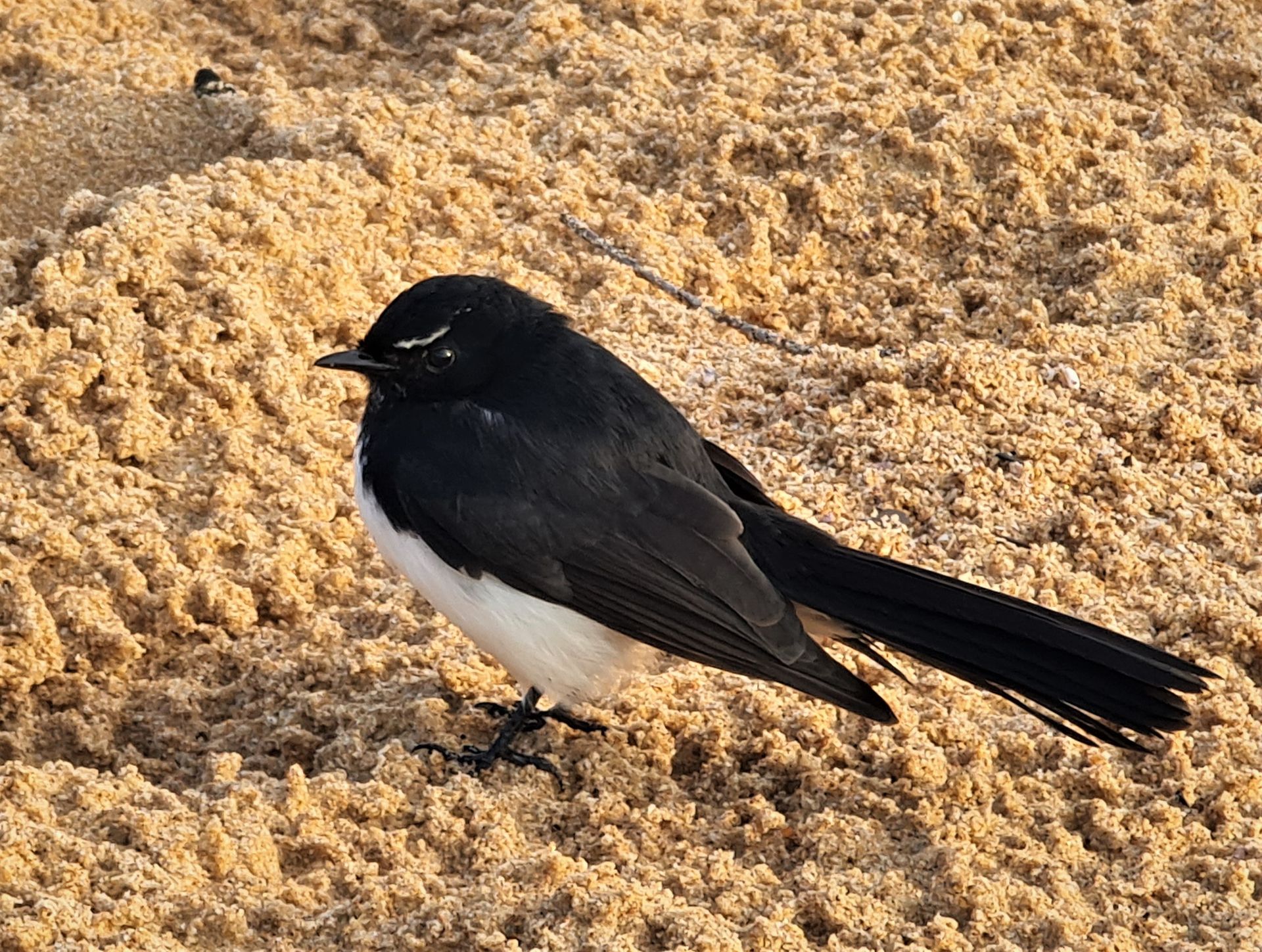 Willy Wagtail came out for a short visit to catch the insects I was disturbing while walking along the beach.
