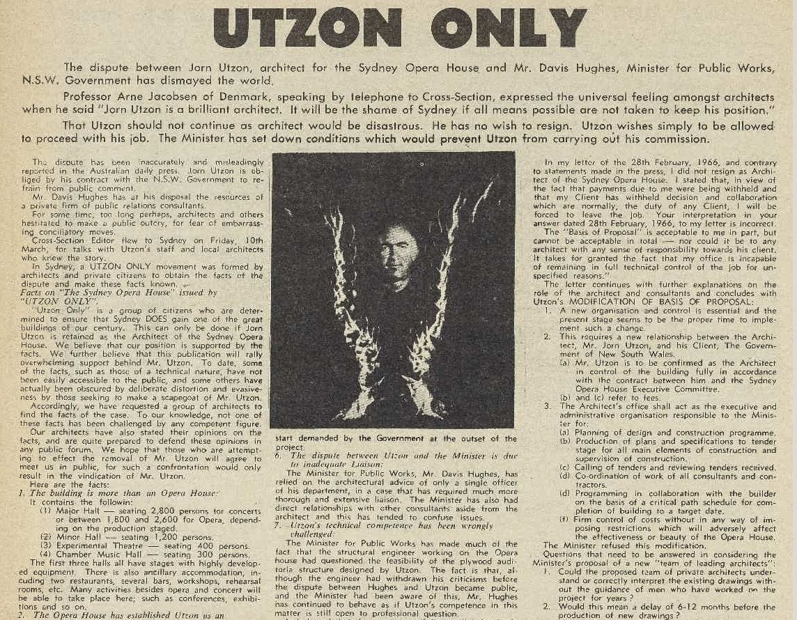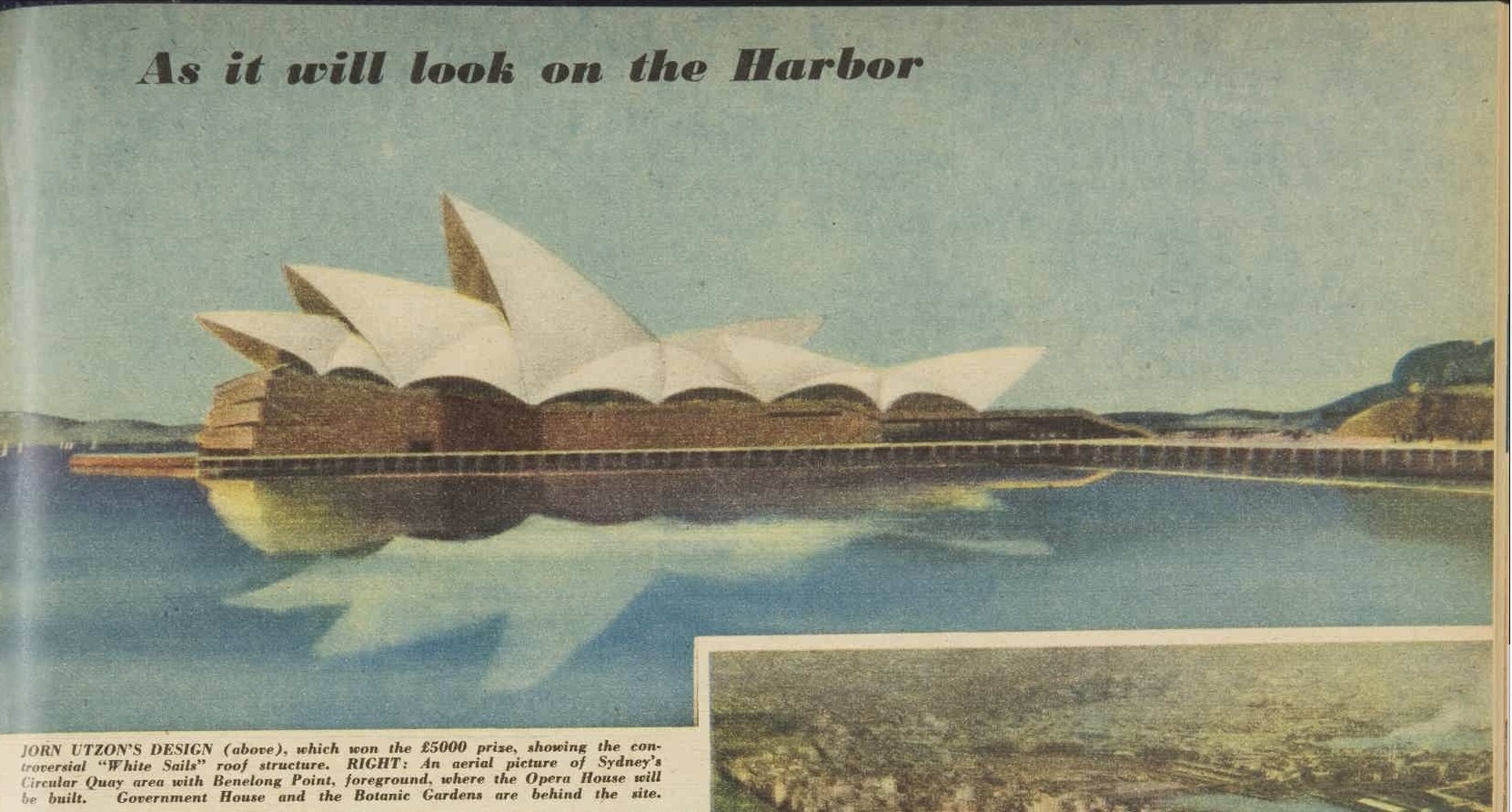 It is realised that the construction of an Opera House is a costly undertaking, but the country has probably never been more prosperous than at present, and the acquiring of such a building would be passing on some tangible asset to poserity, just as we have received many fine gifts such as the University of Sydney, the National Art Gallery and other buildings from the past. It is such edifices, representative of the cultural life and aspirations of the people, that, together with its economic and commercial aspects, constitute a great City. Mr. Goossens has been the spearhead of this Opera House crusade, which we hope will materialise on the best site available with the finest building that can be secured. Editorial (1954, October 27). Construction (Sydney, NSW : 1938 - 1954), p. 1. Retrieved from http://nla.gov.au/nla.news-article224517960