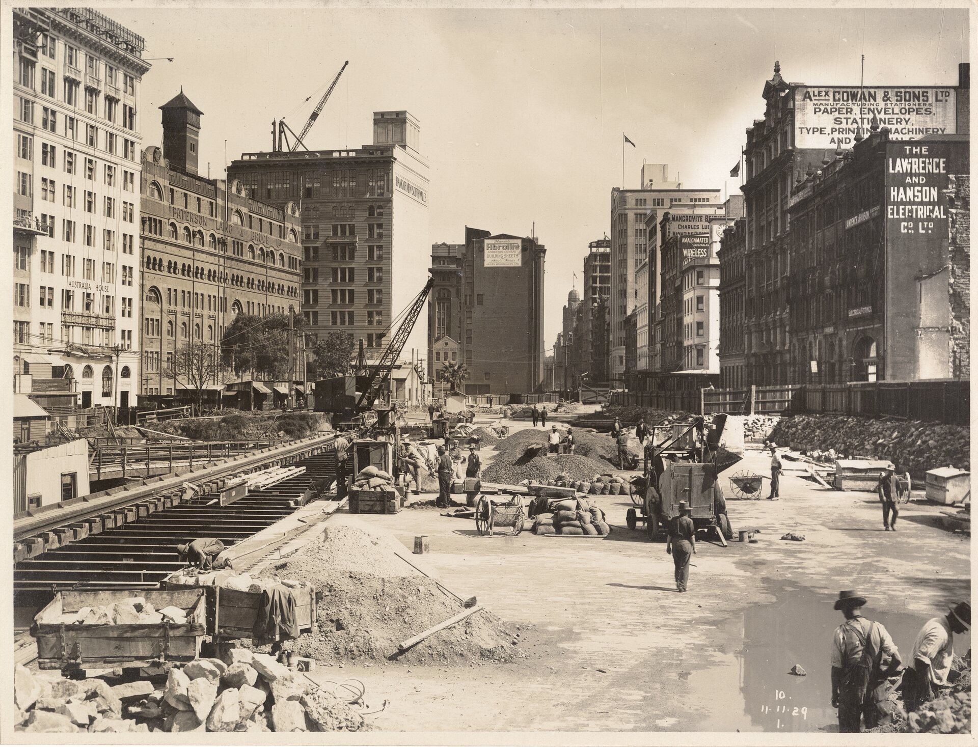 CONSTRUCTION OF STATION, CITY CIRCLE, WYNYARD NSW 11-11-1929 to 11-11-1929 FL9267914 courtesy NSW State Records