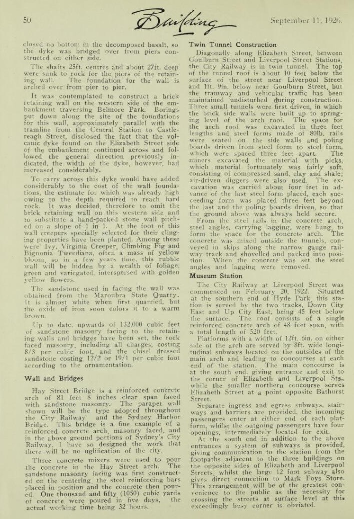 Above all from - Federated Builders' Association of Australia & Master Builders' Federation of Australia. (September 11, 1926). The Construction of Sydney City Railway DR. BRADFIELD LECTURES, Building : the magazine for the architect, builder, property owner and merchant Retrieved from http://nla.gov.au/nla.obj-310361291