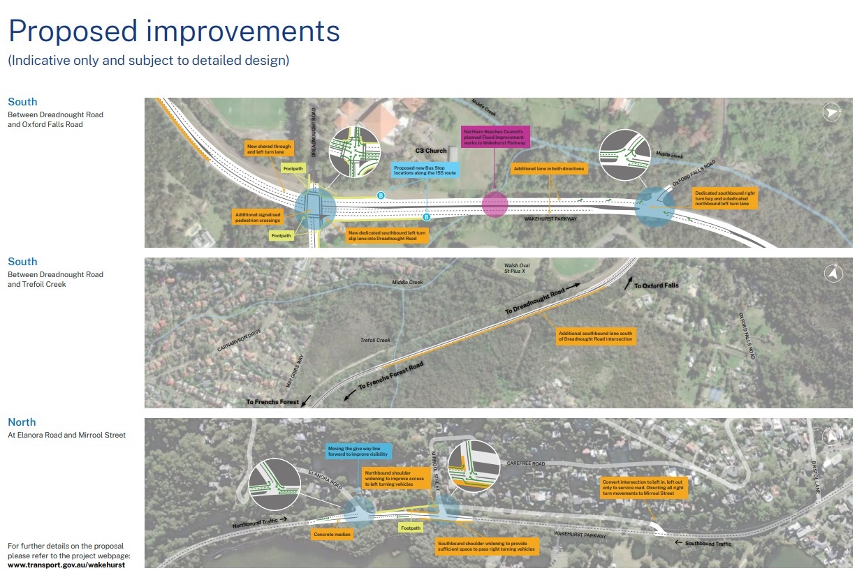 Transport for NSW's proposal states three priority locations have been identified for capacity improvements on Wakehurst Parkway: