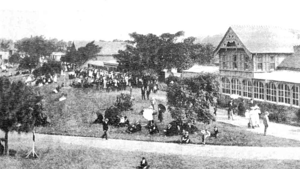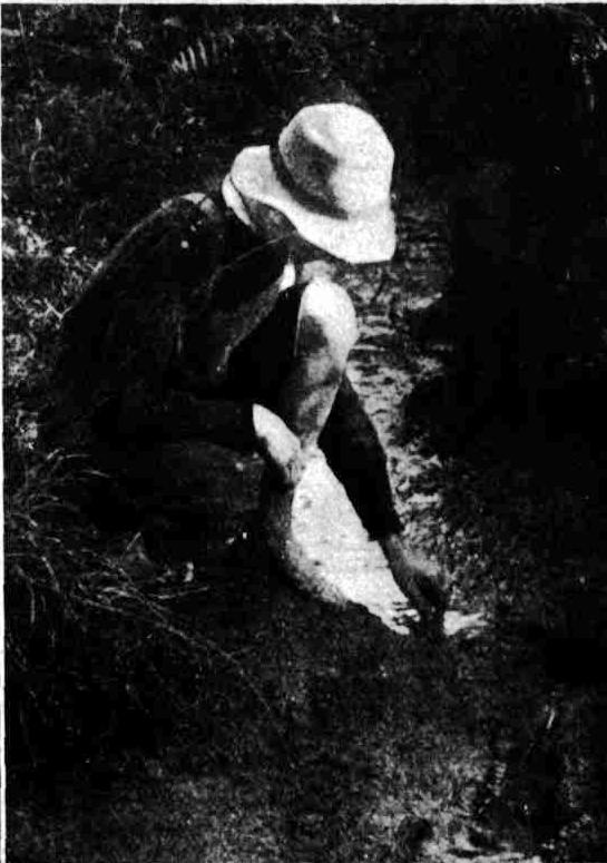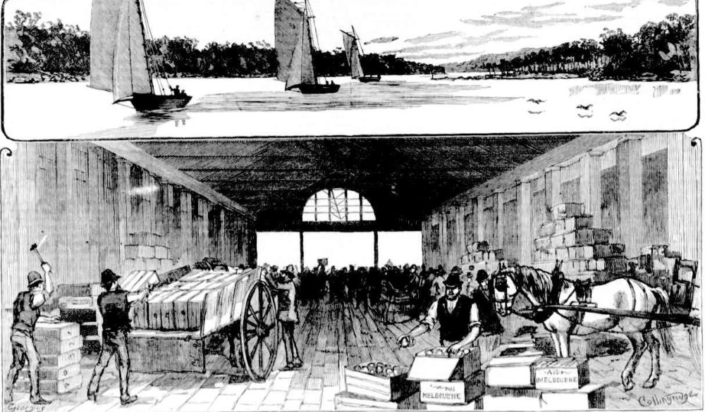 In the cool early morning I took a stroll through the garden and orchard surrounding the house, on whose trees late oranges and lemons of unusual excellence were still pendant. Down by the waterside were millions of oysters, whose careless profusion suggested a flouted industry. A well-worn path under giant gums and sassafras trees led to a noted part of the grounds. Here was a waterfall tumbling fifty foot in smoke-like spray. The whole face of the cliff which was watered by the spray was covered with clinging plants, ferns, and funny looking creepers. About this spot the vegetation was as beautiful and luxuriant as I ever remember having seen it in the mountains. There were fern trees, as tall as the stateliest in the mountain gullies. Bangaloes of magnificent size, and 40ft, upon the trunk of a glorious blue gum there was a mass of Staghorn ferns as big as small cottage. From the trees the rope-like Supple jack descended, and the bushes about fairly blazed with blossoms. So thick was the growth that it was impossible to force a way through it. A fairer spot there is not on the coast anywhere in the vicinity of Sydney.
