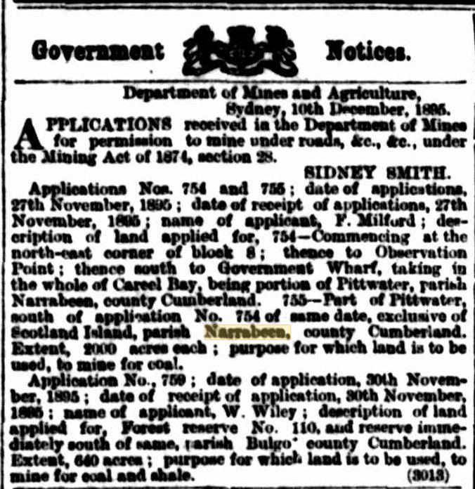 A SPLENDID BLOCK FOR SUBDIVISION PURPOSES having a large frontage to Lane Cove and Pittwater roads, and road leading to Narrabeen. Immediately opposite Mr Larkin's Orchard THE TITLE IS TORRENS. Plan on View at the Salerooms. Advertising (1912, January 20). The Sydney Morning Herald (NSW : 1842 - 1954), p. 25. Retrieved from http://nla.gov.au/nla.news-article15303595