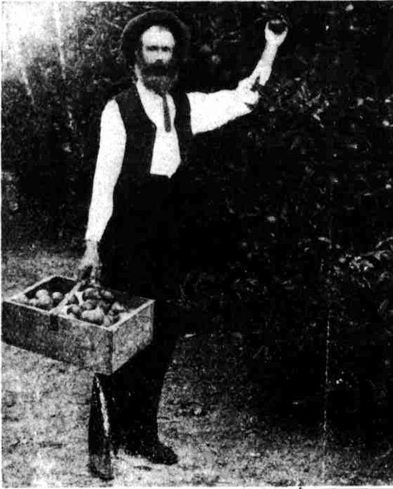 Mr. N. F. Donagh (Wyberba) is the grower of these giant plums, which resemble fair-sized appies. The 2 7/8 inch plums scaled half a pound each, while the slightly smaller specimens weighed 7 ounces.