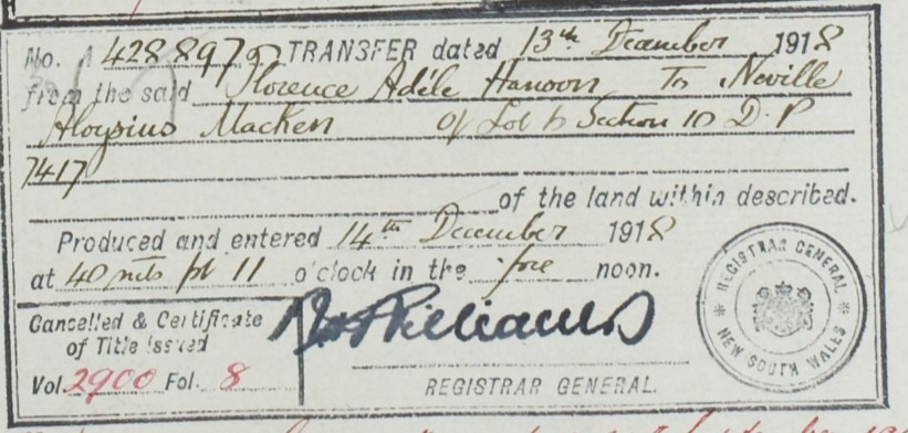 Alice Macken, like The Hon. James J. Macken (Jim), was a Foy - who were also HUGE in retail. Alice Macken, later Ward when she remarried after her husband's untimely death, had two blocks along the Collaroy beachfront, while a third was also purchased by the family;