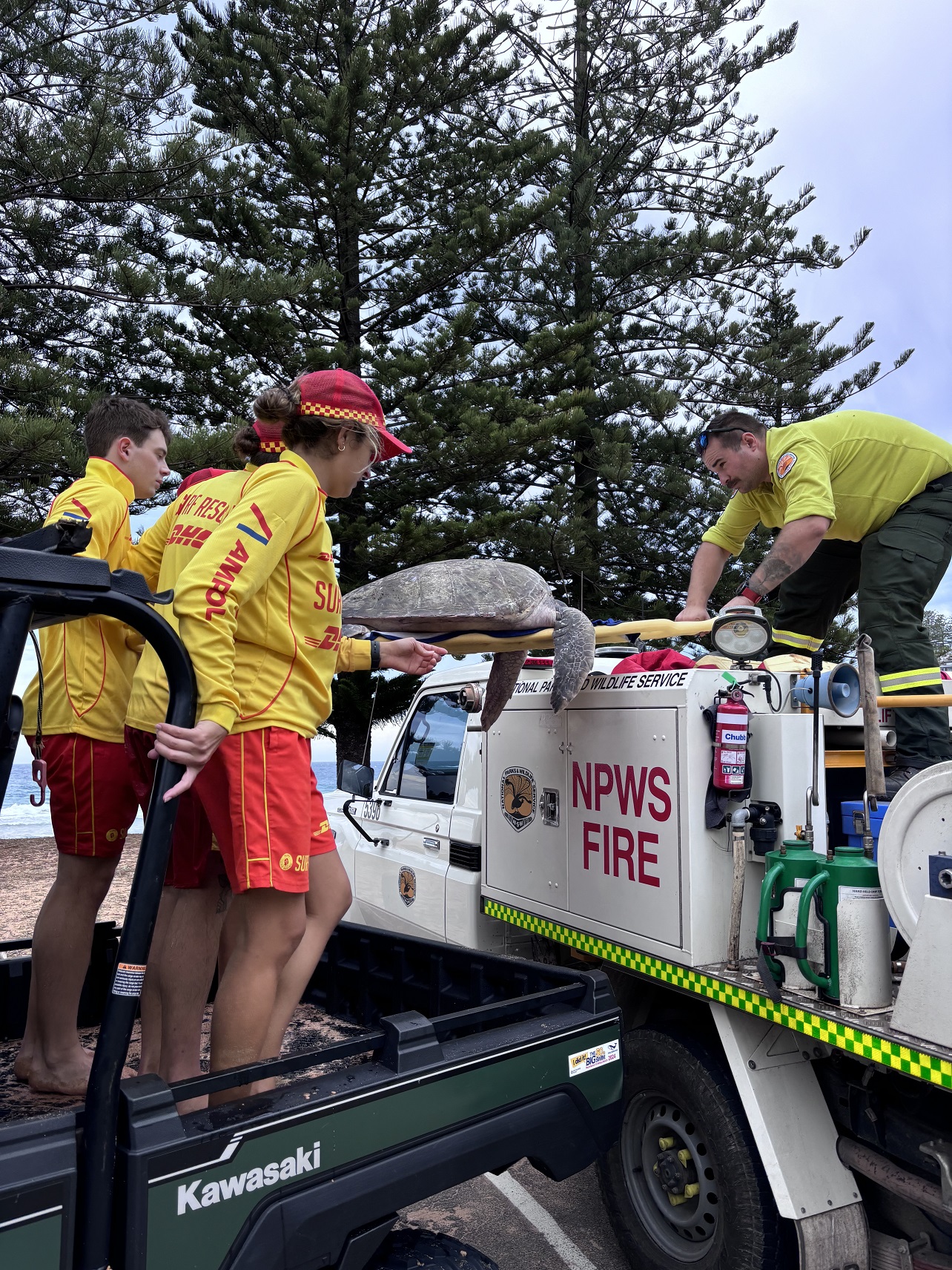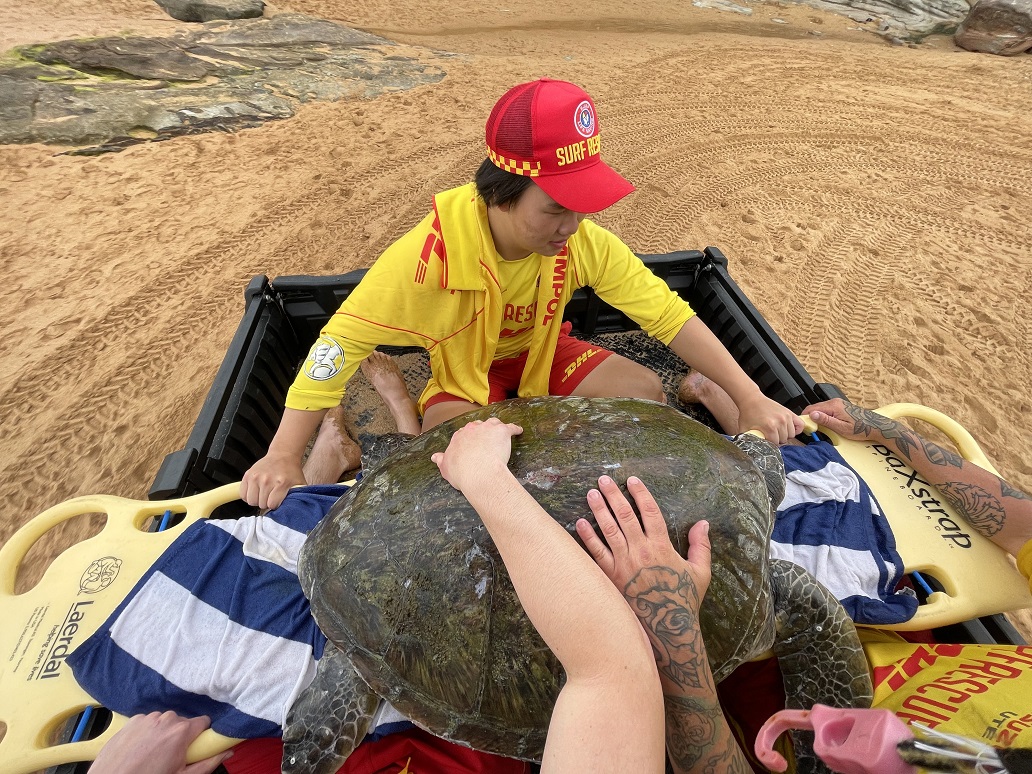 Whale Beach SLSC's Green Turtle rescuers photos; courtesy WBSLSC Club Captain Olivia Rees-Ewen and Surf Life Saving NSW