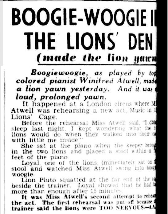 The time she played in a lion's cage to please her circus manager friend Jack Hylton, even the lions started tapping their feet when she pounded out Boogamba for them.