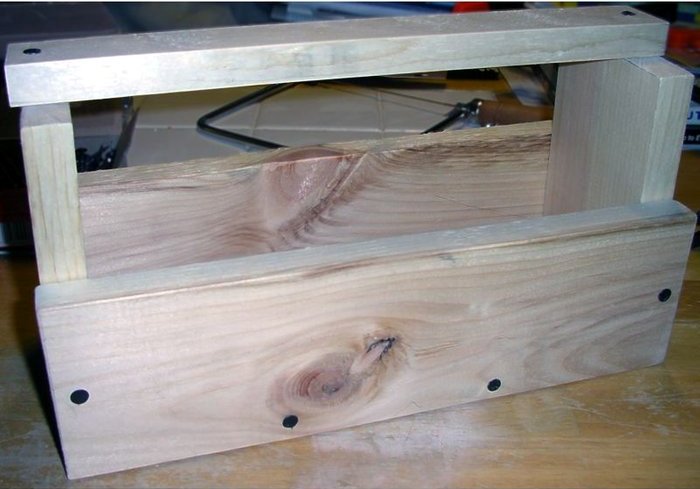 For the dowel; trace the outline of this in the end pieces (Inside). We drilled the hole at 1/2", same diameter as the dowel itself. Insert the dowel rod into the holes of the toolbox, as a handle. This is pretty snug so you may not need glue to hold it in, but a little never goes astray if you’re building for longevity. Assembly would probably be a little bit easier if you drill the hole slightly larger and then glued it in place.
