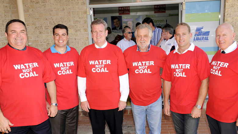 Wyong group Australian Coal Alliance have run with a slogan of 'Water not Coal' for years now, with politicians quite happy to don the red t-shirt - when an election is on.