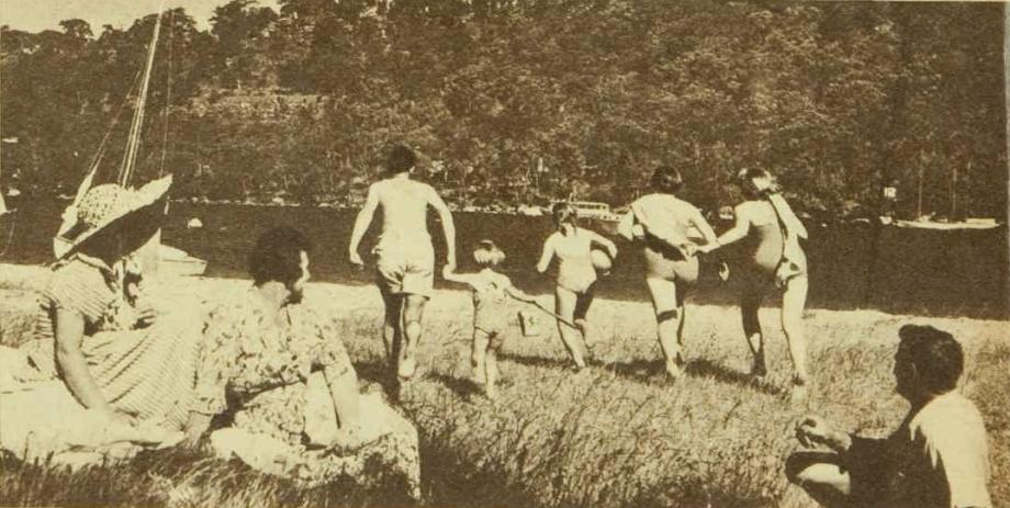 The Basin today accommodates up to 400 campers. The fee has risen a little since 1935’s 5 shillings a tent per week but it’s still great value for families and a delight for children. Palm Beach Ferries runs there daily should you wish to have a picnic yourself and it’s quieter during the week; you may even hear some of the echoes from those who dwelled there in yesteryears or smell their billy tea.