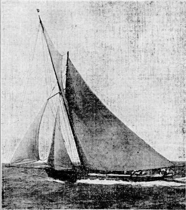 A prominent identity in nautical circles in the early days was the late Mr. George Thornton, who carried off the big race at the Anniversary Regatta of 1839, with the Haidee. This vessel, subsequently sank off. Shark Point and drowned several of her crew. Additional interest was given to yachting in Sydney in 1848 by the late Mr. Richard Hayes Harrnett, owner and skipper of the Madge Wild-fire, who personally designed that remarkable boat; the Australian. In the construction of this vessel which was nicknamed the 'Beaky' or the 'Soda Water Bottle,' Mr. Harnett introduced new ideas. Abandoning all traditions as to the best form of a yacht's hull, he ran a straight edge from keel to water-line, and made all the transverse sections two sides of a triangle. In the longitudinal design he broke away from the straight keel with the deep forefoot, and swept the arc of a circle for the keel, the vessel, which was built at Woolloomooloo Bay by the late Mr. Dan Sheehy.