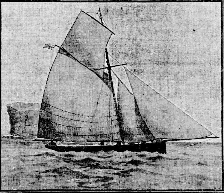 A correspondent writes from England as follows: Long before this reaches your readers they will have been informed by cable of the ill success of the Australian yacht Irex, brought over to England by Mr. Mark Foy to try conclusions with the best boat of her dimensions that the skill and experience of England could produce. The challenge was accepted by Mr. W. L. Wyllie, A.R.A., the eminent marine artist and yachtsman of the Medway River, Kent, and a syndicate was formed in Rochester to build a boat fulfilling the requisite conditions. Designed by Messrs. Wyllie and Linton Hope, constructed by Gill and Sons, of Rochester, and christened the Maid of Kent, she has proved herself the lightest and speediest thing of her size that has ever left a boatbuilders stocks. She is 24ft overall, 22ft water line, and 7ft 6in beam. She is very flat on the bottom, with a clean run aft, and her shallow cockpit or sall tank is entirely water tight, and is only on the floor 6in below the gunwales. She is, therefore, a watertight shell, and it is utterly impossible to fill or waterlog her, as all she ships runs out down through the plate slot, and so obviates the necessity of bailing. She has very little freeboard, stability being gained by the great breadth and also by the crew sitting out to windward.