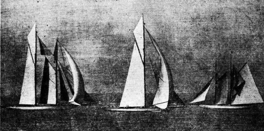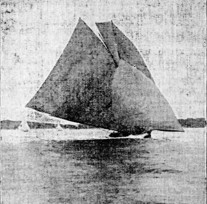 Caneebie, that had been giving Irex a great race for third place, had her mast blown clean away out of her; and the skipper of Vigilant, whose mast had been sprung in one of the squalls, played for safety at the Shark Island buoy, and instead of gibing, put his helm down. Whether the crew were taken by surprise, or there was some misunderstanding, the sheets were not brought in fast enough. The skipper of Bulletin saw his chance, and threw his boom over. It was an anxious moment when the boat heeled over, but she righted, and sped, with a good lead towards the flagship. On the beat to Fort Denison she drew out further from Vigilant, but all was not over yet. The two leaders, owing to shifts in the wind and a calm, changed places, and it was even money till the line was crossed by Bulletin to the accompaniment of the wildest cheering, a few: seconds only ahead.