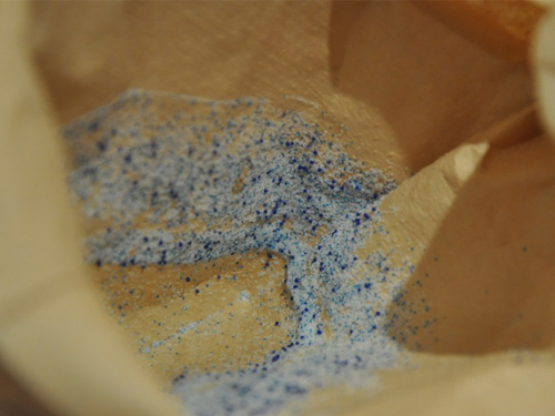 Once the mixture had passed through the paper, the plastic microbeads were left behind - this picture shows how many of these microplastics are contained in a fairly small amount of the product. Credit: Tanya Cox/FFI.
