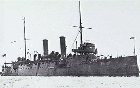 1910. STARBOARD BOW VIEW OF THE SECOND CLASS PROTECTED CRUISER HMS CAMBRIAN, THE LAST FLAGSHIP OF THE AUSTRALIA STATION. NOTE THE 6 INCH GUN ON HER FORECASTLE AND THE 4.7 INCH GUNS TRAINED ON THE STARBOARD BEAM AWM image 302155