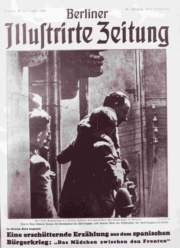 Right: The Berliner Illustrirte Zeitung pioneered modern photojournalism and was widely copied. Pictured, the cover of issue of 26 August 1936: a meeting between Francisco Franco and Emilio Mola.