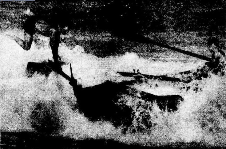 SHARK ALARM - Harry Ragan and Max Watt, both members of the Avalon club, were swimming in a race when a shark was sighted 50 yards from them. Members of the club, in a boat supervising the race, spotted the shark heading towards Ragan and Watt, and raised their oars to give the alarm. A big wave helped the swimmers to reach the beach quickly. Their club mates in the boat headed the shark out to sea. Three Saved From Heavy Surf At Bondi, Avalon. (1953, October 19). The Sydney Morning Herald (NSW : 1842 - 1954), p. 3. Retrieved from http://nla.gov.au/nla.news-article18393953