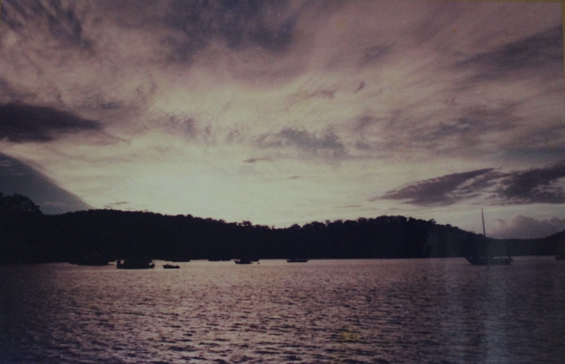 I’m very partial to The Basin, and I like America’s Bay, because they’re quiet. Come and look at this; this is The Basin, this is one of my photos. And this one is America’s Bay; this one (Basin) I got up early, at dawn, when June and I were really early days together, and had a look, and thought, got to get my camera. I’m a mad photographer. That one of America’s Bay happened just after five of an afternoon. I love that photo, it shows the sun and the wind.