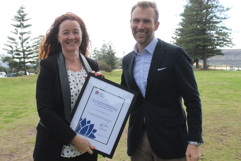 Hon . Rob Stokes, Member for Pittwater and NSW Minister for Heritage and NSW Minister for the Environment, was at Palm Beach’s Governor Phillip Park to commemorate 200 years since the Governor Phillip’s death on August 31, 1814 yesterday. Along with presenting Deputy Mayor Kylie Ferguson with a Certificate marking Pittwater Council's Contribution to the Heritage of Pittwater itself, Mr. Stokes announced that one million dollars worth of repairs and renovations at Barrenjoey Lighthouse and Headland are now well underway and guaranteed no inappropriate developments would take place on one of the few lightships still as it was when first created on his watch.
